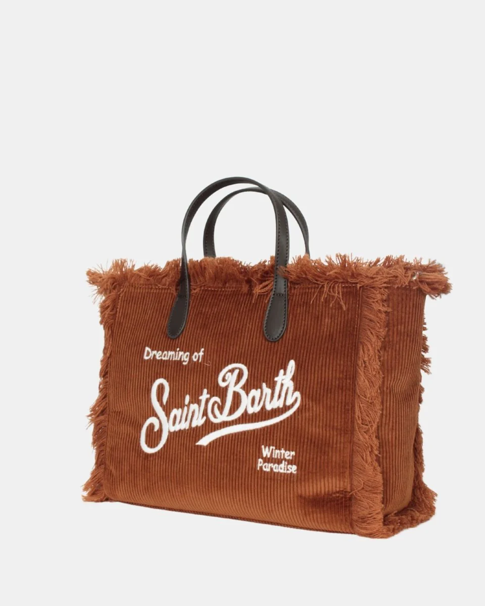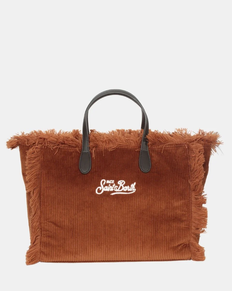 La borsa di Mc2 Saint Barth è realizzata in 100% poliestere. Il modello presenta fantasia a coste scamosciate, sfrangiature lungo tutto il perimetro, logo ricamato sul fronte e sul retro, manici in ecopelle, tracolla removibile e regolabile in ecopelle, due scomparti interni di cui uno a toppa ed uno a filo con chiusura zip e chiusura interna con zip.