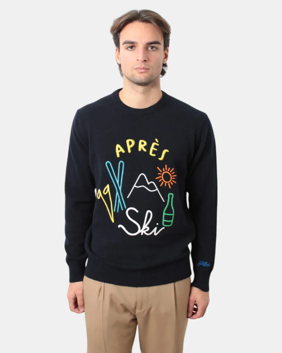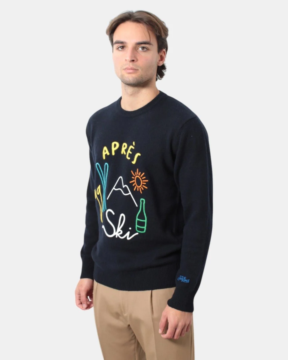 La maglia a girocollo di MC2 Saint Barth presenta collo, fondo e polsi a costine, fantasia ricamata sul petto, dalla mano calda e morbida dovuta alla sua composizione in 45% lana, 30% viscosa, 15% poliammide e 10% cashmere. Si consiglia lavaggio a secco. Il modello è alto 1,79 e indossa una M