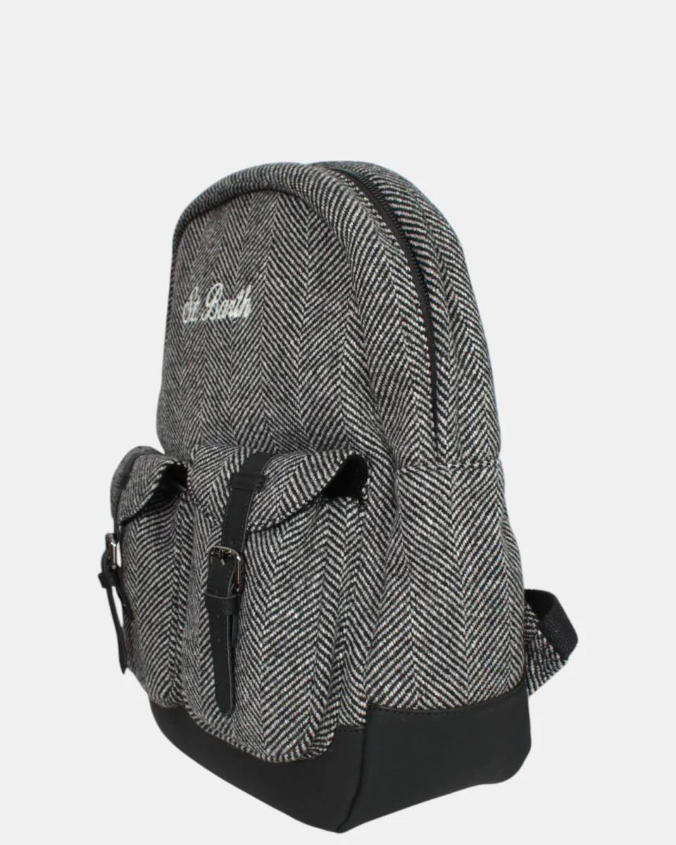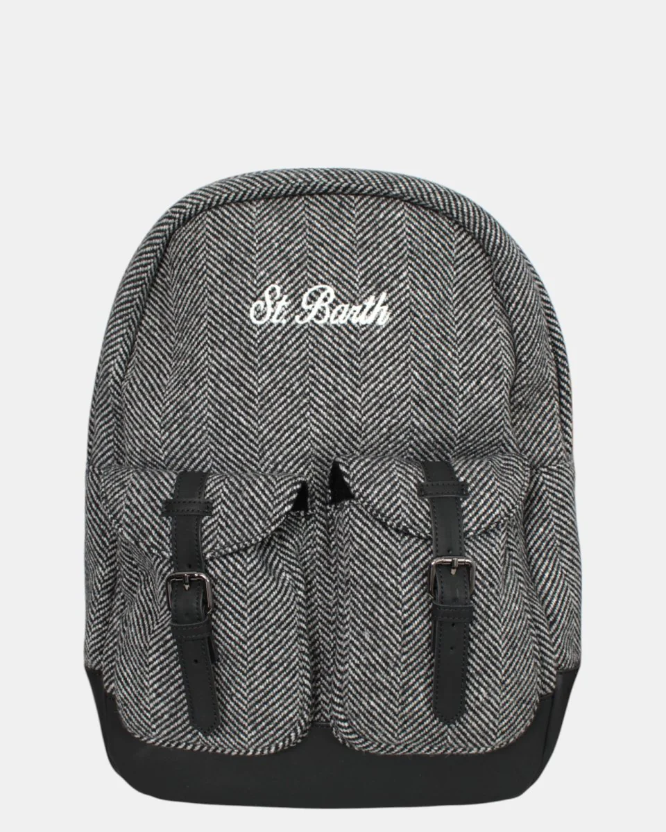 Lo zaino modello PIED DE POULE di MC2 Saint Barth presenta fantasia a quadretti esternamente, interno vellutato, presenta due tasche con chiusura a cinturino e logo brand cucito in contrasto, il fondo dello zaino è in pelle . Internamente presenta due tasche, una a rete e una ad elastico, la composizione dello zaino è 40% poliestere, 30% cotone e 30% lana .