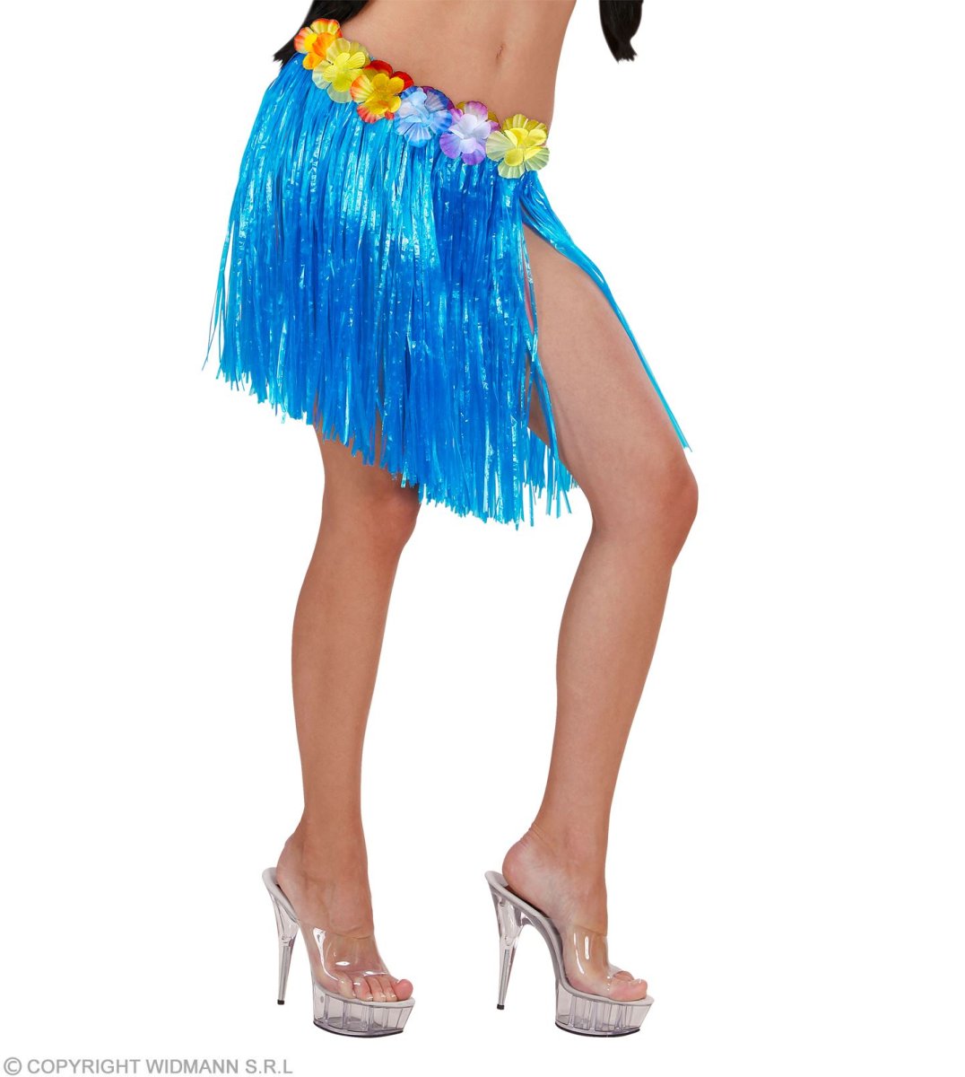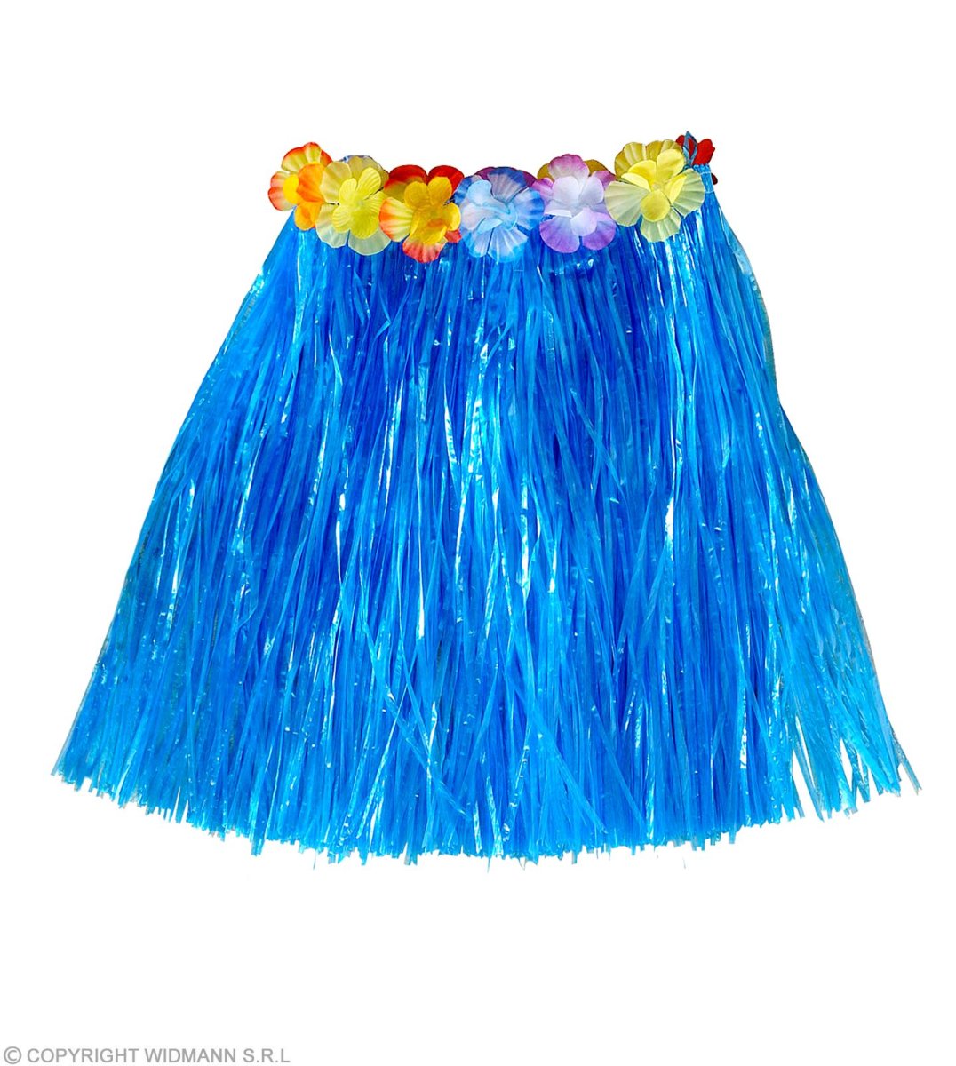 Minigonna Hawaiana blu con cintura di fiori 45 cm