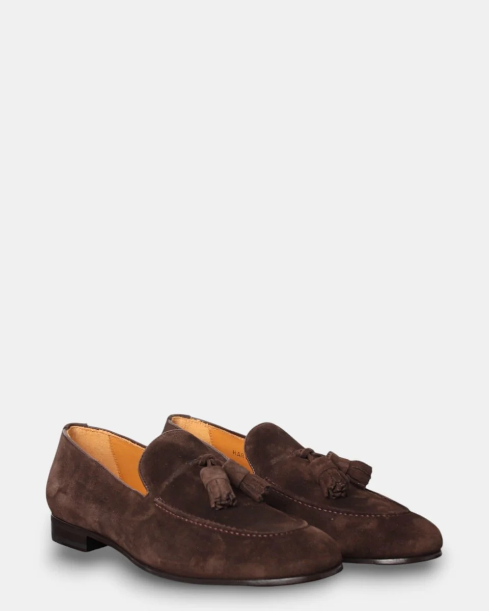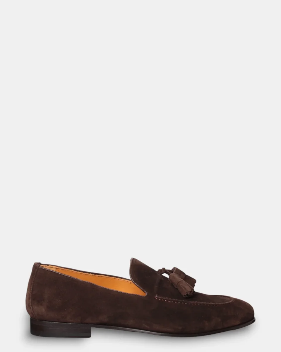 – DETTAGLI: tomaia in suede, nappine marroni, fodera e soletta interna in pelle, suola in cuoio con inserti in gomma antiscivolo