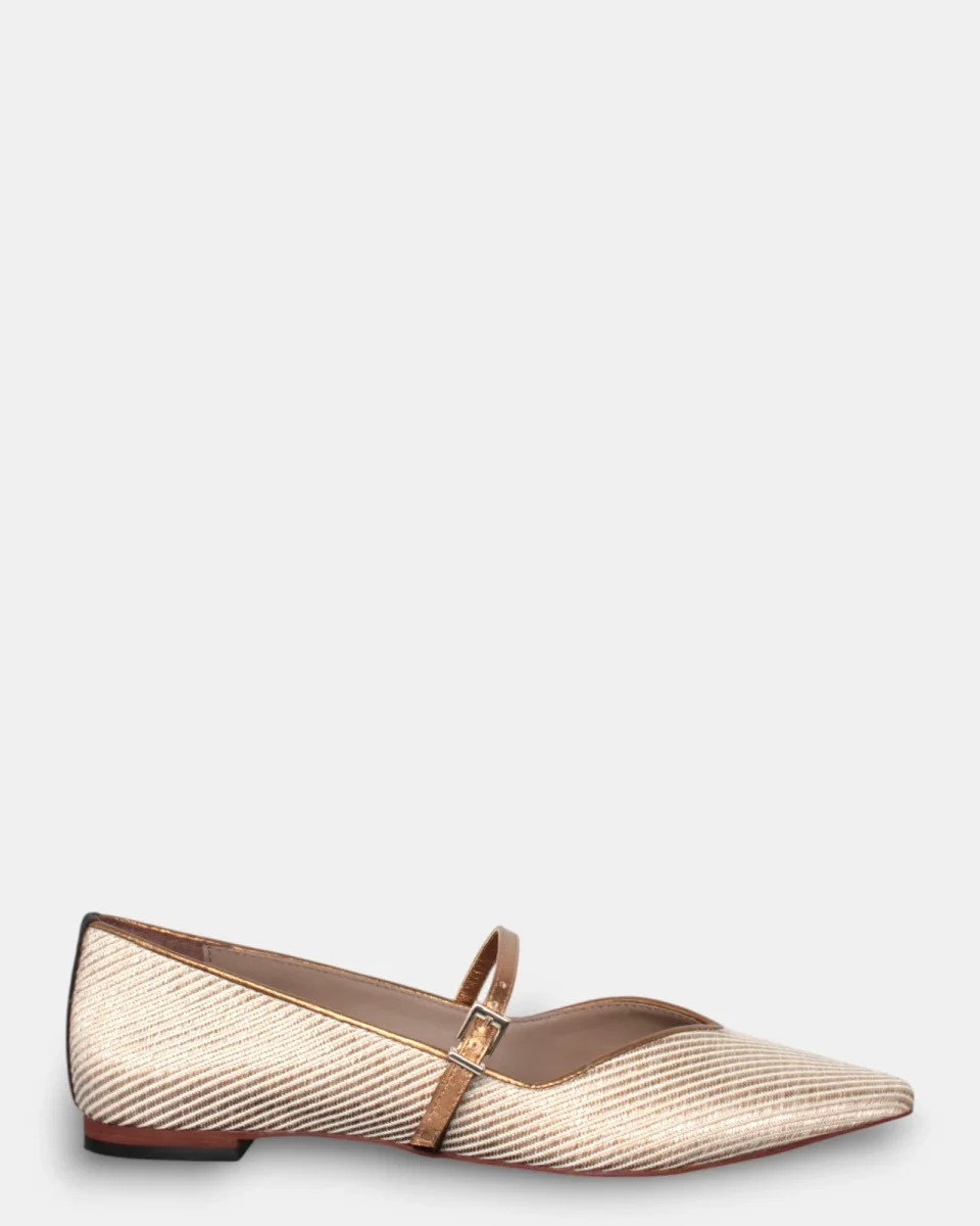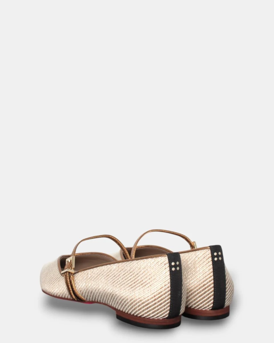 Il mocassino di Dotz presenta chiusura con fibbietta in ottone sul collo del piede, tomaia in tela, tacchetto e suola in cuoio. Calzata regolare
