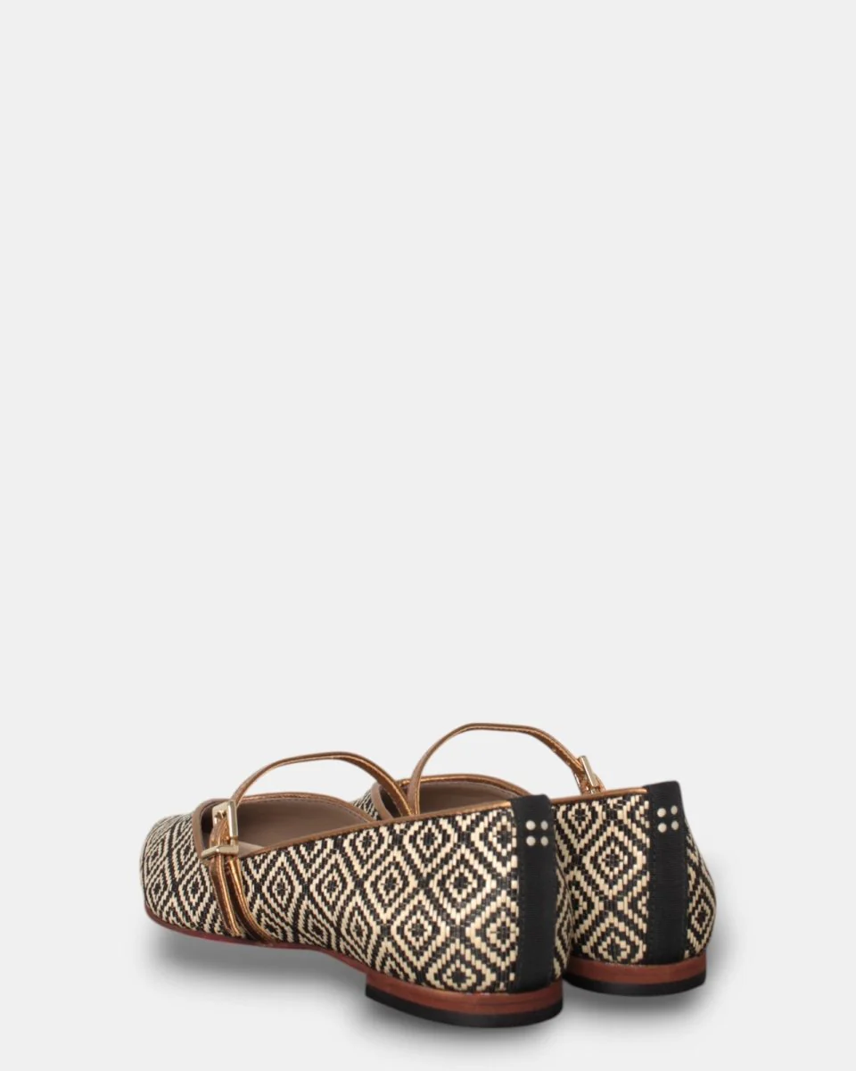 Il mocassino di Dotz presenta chiusura con fibbietta in ottone sul collo del piede, tomaia in tela, tacchetto e suola in cuoio. Calzata regolare