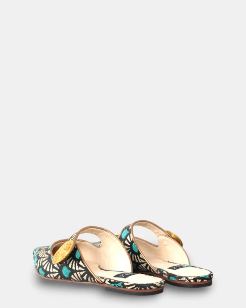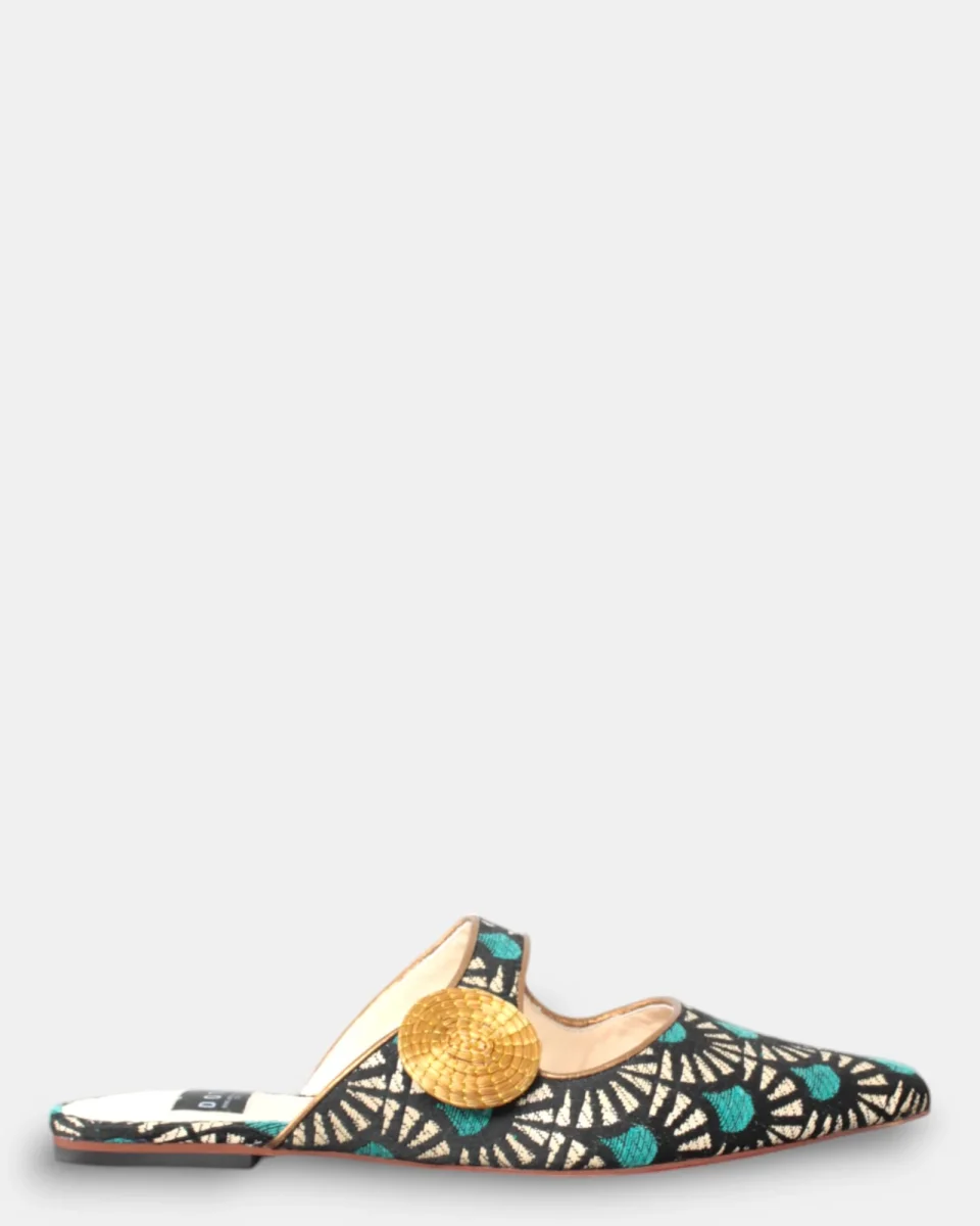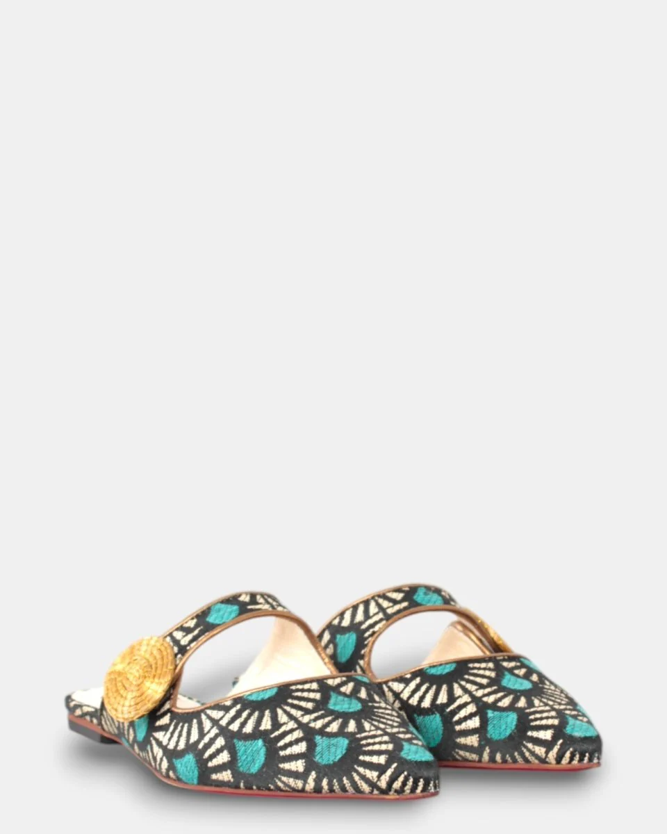 Il mocassino di Dotz presenta fantasia con colori a contrasto, dettaglio sul collo in paglia, apertura sul collo del piede, tacchetto rialzato. Vestibilità comoda