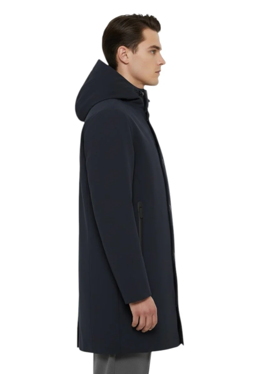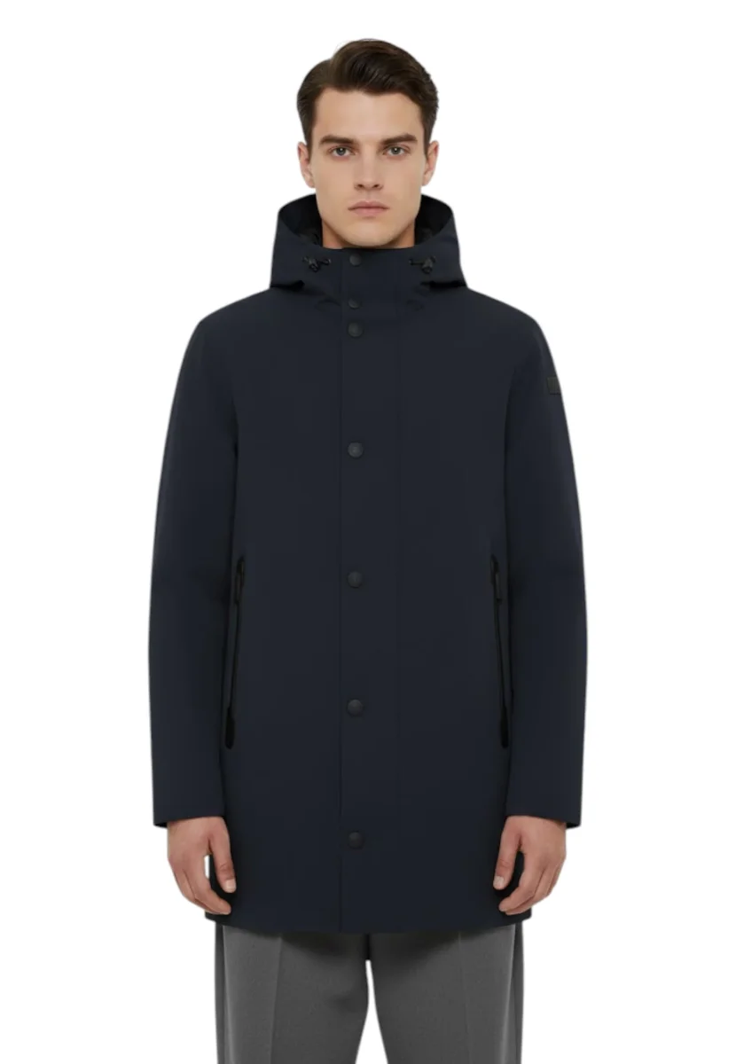 Il capo è realizzato con l’innovativo tessuto a membrana Stratofabric3, noto per essere consistente e traspirante. La costruzione è interamente termonastrata, un dettaglio tecnico che assicura totale impermeabilità e protezione contro gli agenti atmosferici.