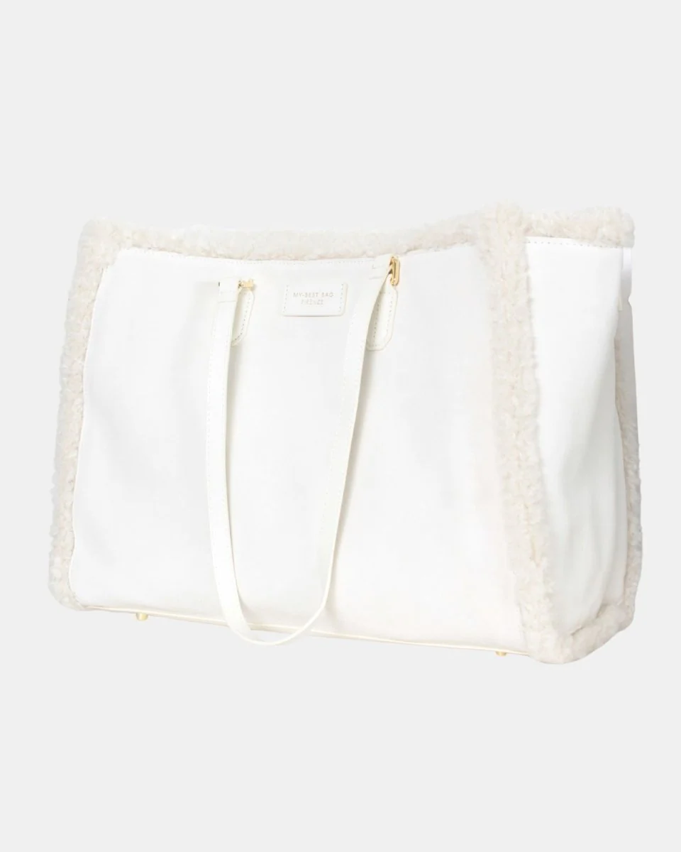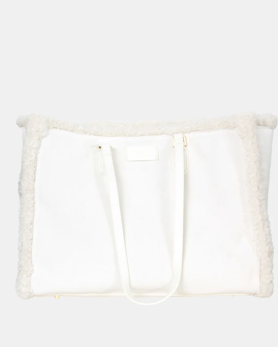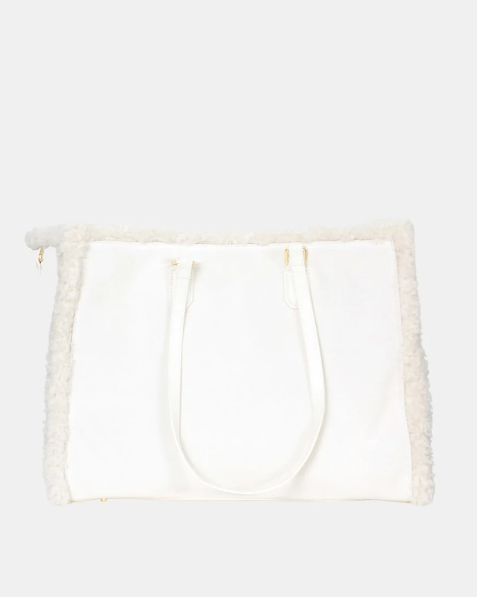 La borsa in ecopelle di My best bag presenta chiusura interna con zip in ottone, dettagli in ecopelliccia e fantasia scamosciata, presenta anche tracolla lunga