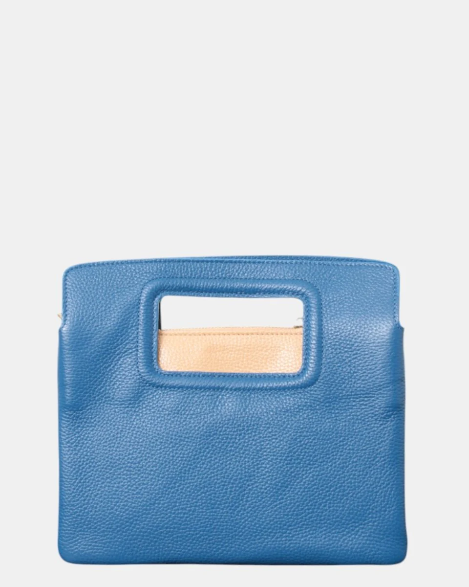 La borsa di My Best Bags presenta chiusura con zip in ottone, rivestita completamente in pelle a contrasto di colore, caratterizzata da due manicotti quadrati