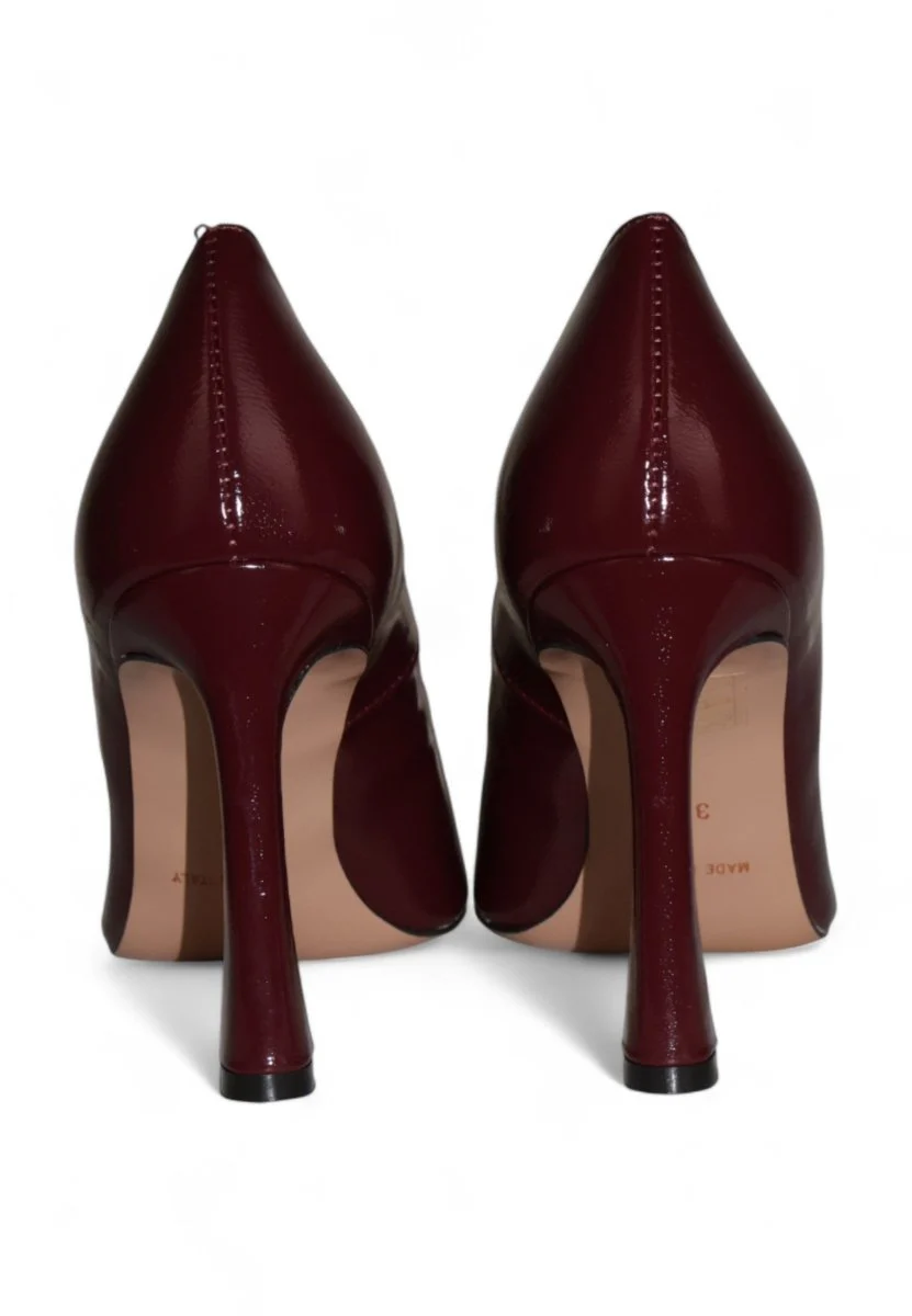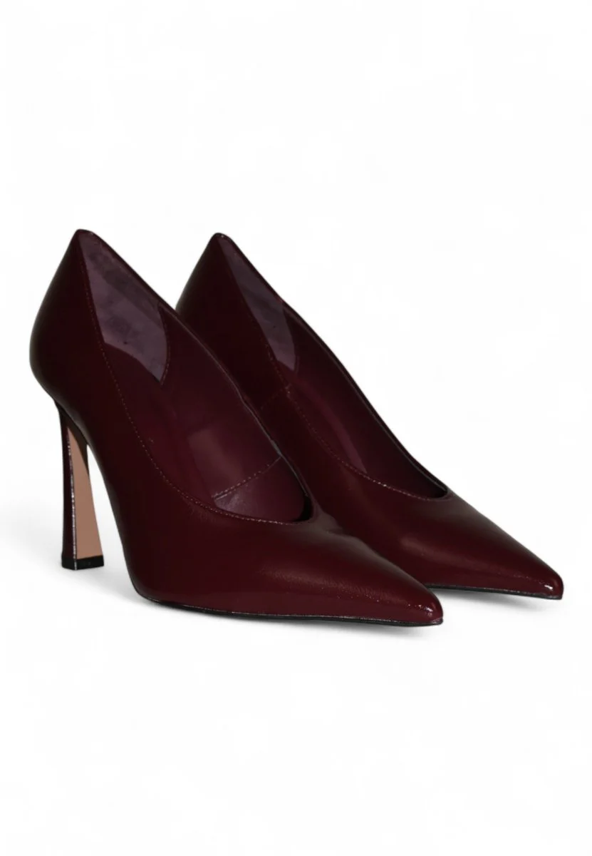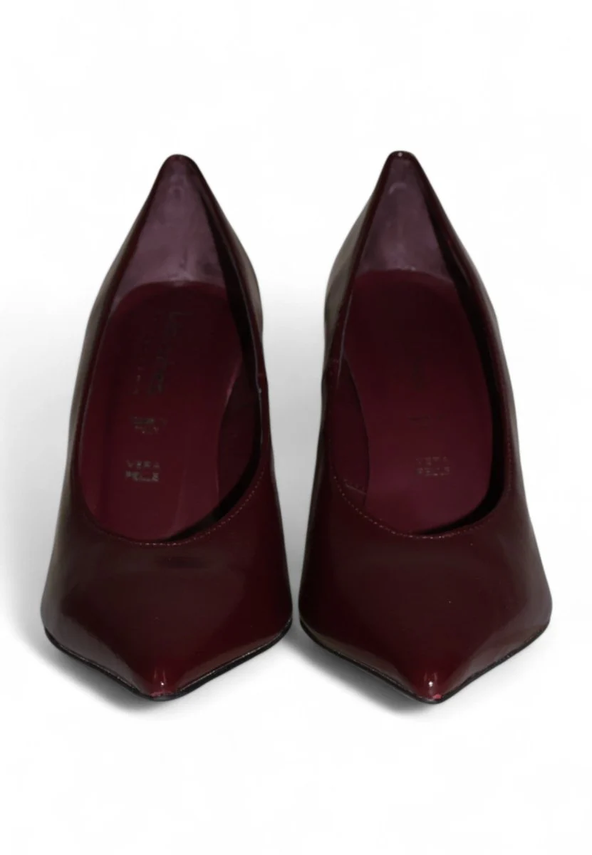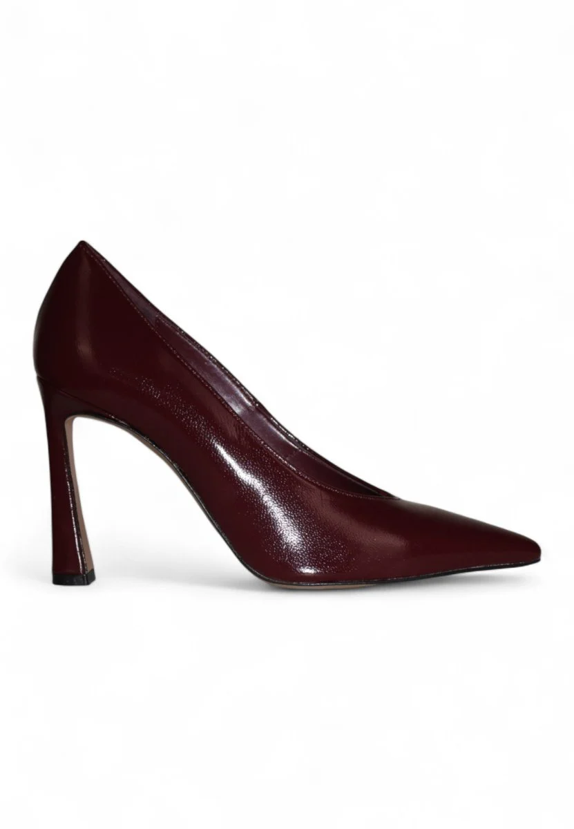 Decolleté in vernice bordeaux dal fascino intenso e raffinato, perfetta per chi ama distinguersi con eleganza. Il tacco alto di 9 cm slancia la silhouette, mentre il fondo in cuoio con antiscivolo garantisce comfort e sicurezza in ogni passo. Un modello iconico, ideale per serate speciali e occasioni importanti.