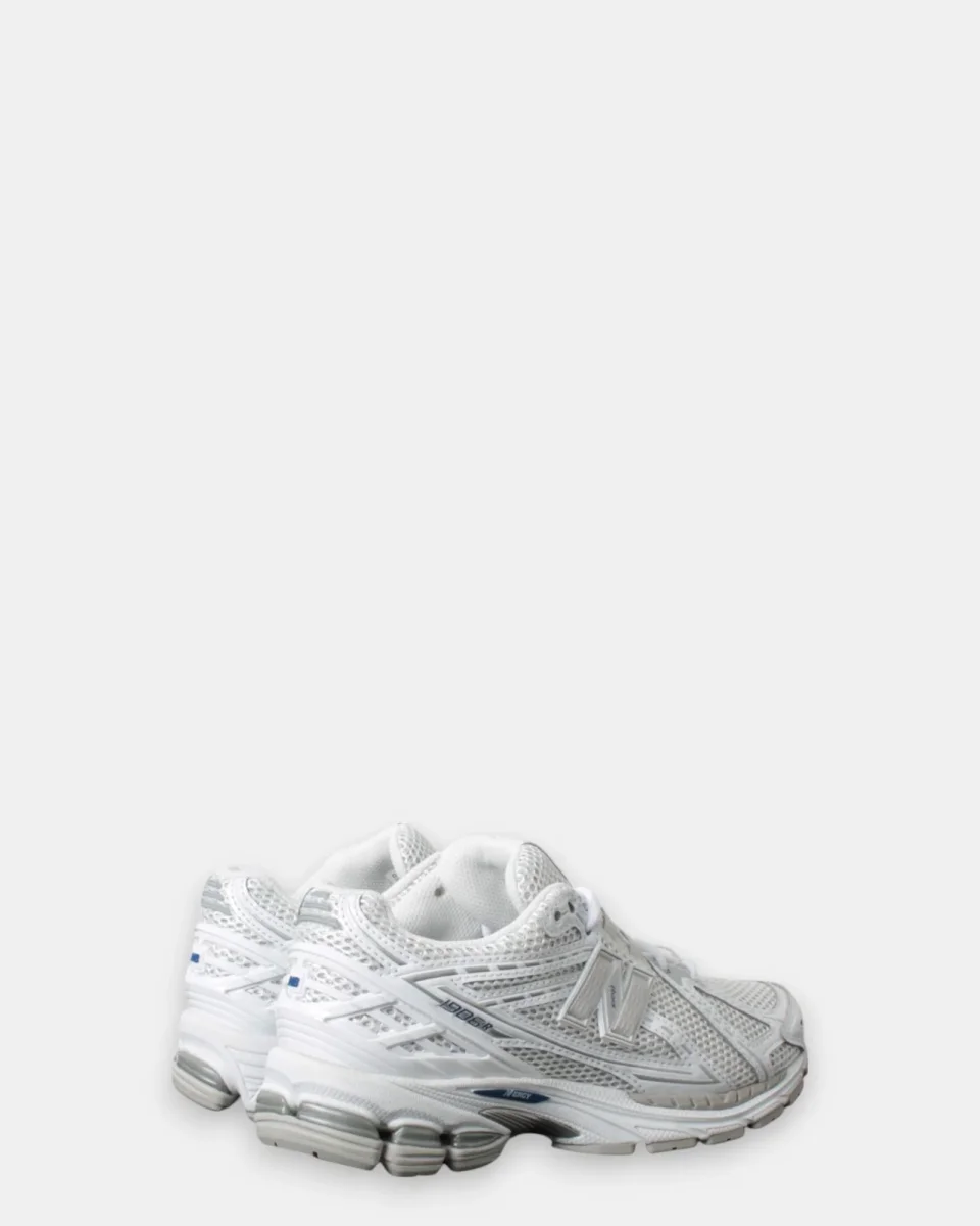 La sneaker modello 1906 di New Balance presenta tomaia in materiale sintetico, con dettagli argentati sulla tomaia, logo stampato su ambo i due margini, chiusura con lacci. La calzata è regolare