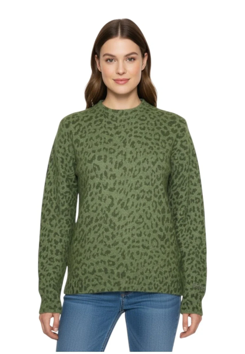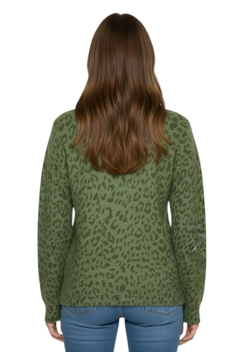 Il design a girocollo e la stampa animalier verde donano un’estetica moderna e sofisticata, perfetta per un look casual chic. Realizzato con una miscela pregiata di alpaca e lana, questo maglione offre calore e morbidezza eccezionali, mentre l’aggiunta di elastan garantisce una vestibilità perfetta e confortevole.