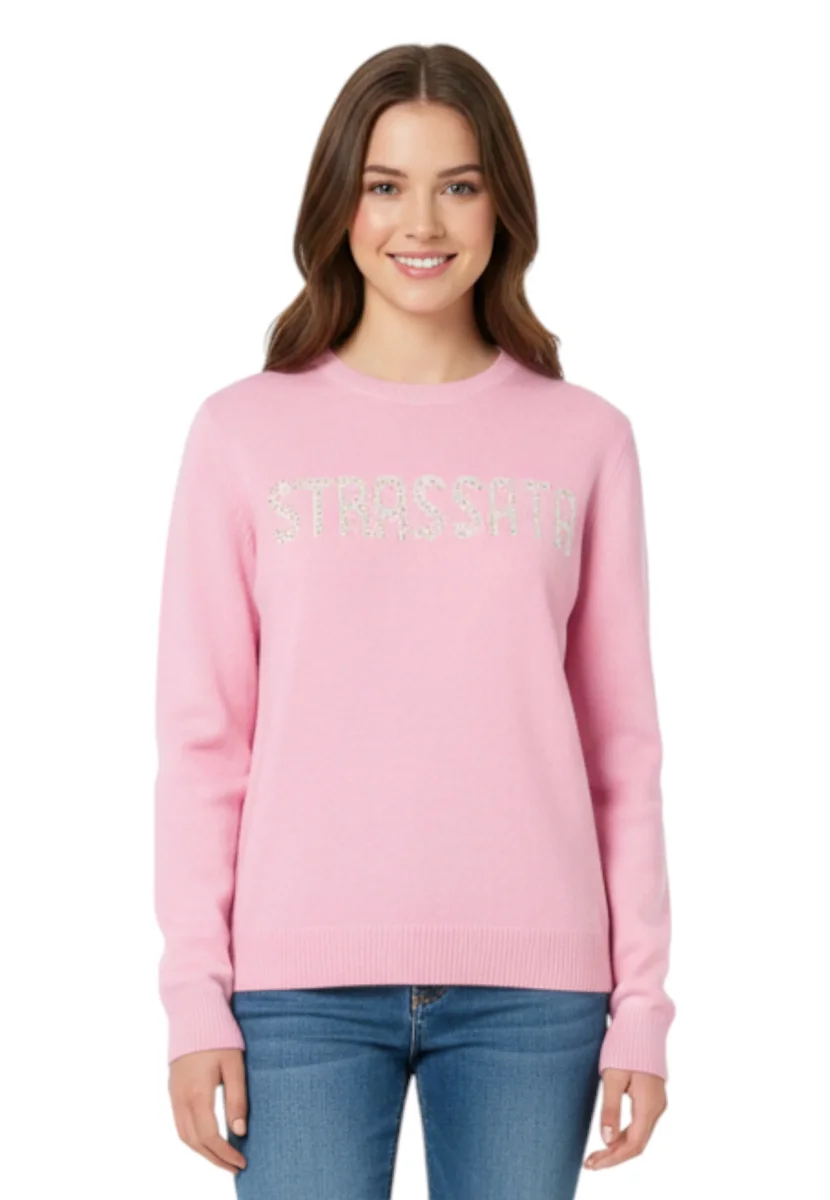 Dettaglio speciale: Scritta Strassata in jacquard con strass