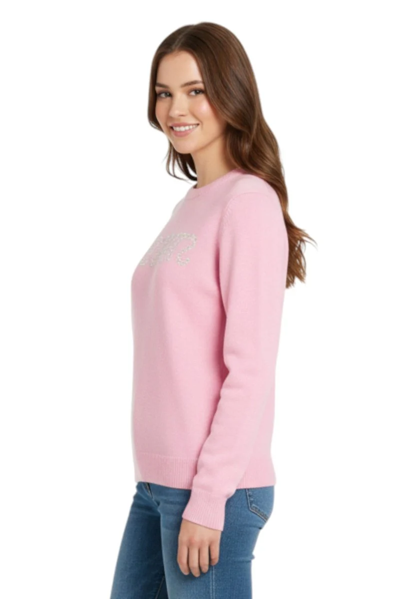 Il maglione New Queen firmato MC2 Saint Barth è un inno alla femminilità luminosa. Realizzato in misto cashmere e lavorato a maglia rasata finezza 7gg, conquista con il suo design semplice ma ricercato. La scritta jacquard Strassata impreziosita da applicazioni in strass illumina il capo con un tocco glamour, perfetto per valorizzare i tuoi look quotidiani.
