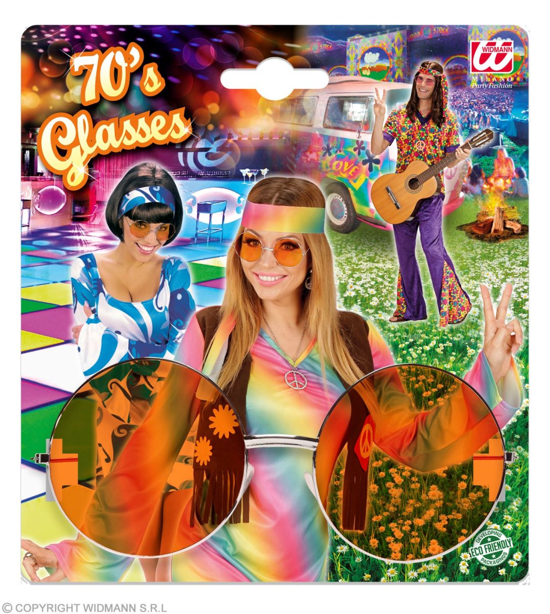 Occhiali da hippy . Le lenti sono di 6 cm di diametro colore arancione.