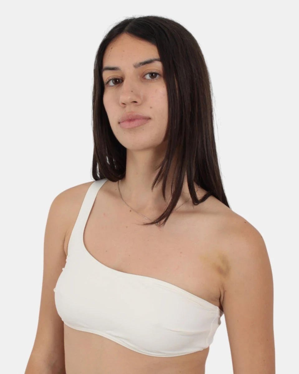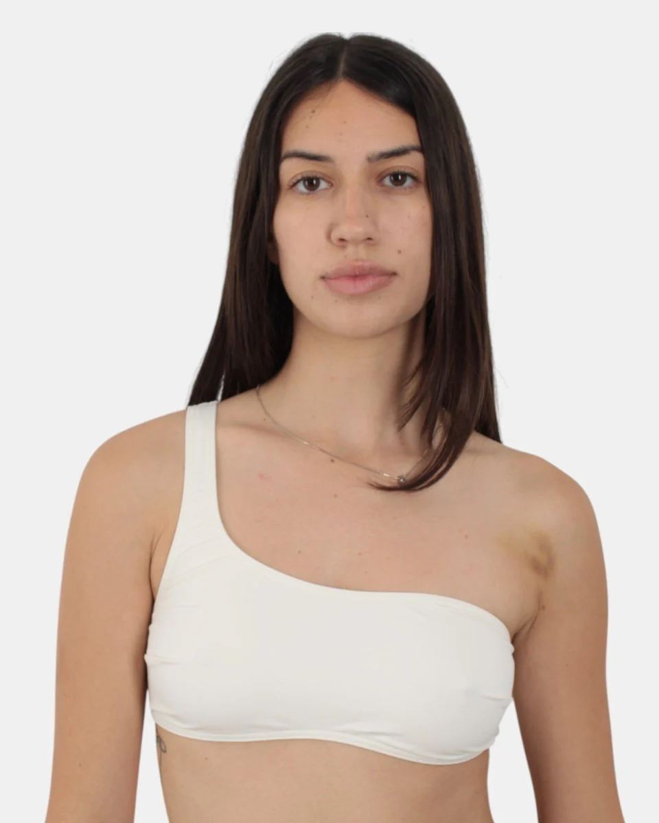 La fascia di MC2 SAINT BARTH, dal taglio contemporaneo, presenta una scollatura asimmetrica con manica monospalla, ideale per le giornate al mare. Realizzata in poliammide a tinta unita, offre una vestibilità confortevole ed elegante. Composizione: 90% poliammide, 10% elastan. Si consiglia il lavaggio a mano. La modella è alta 1,68 m e indossa una taglia M.