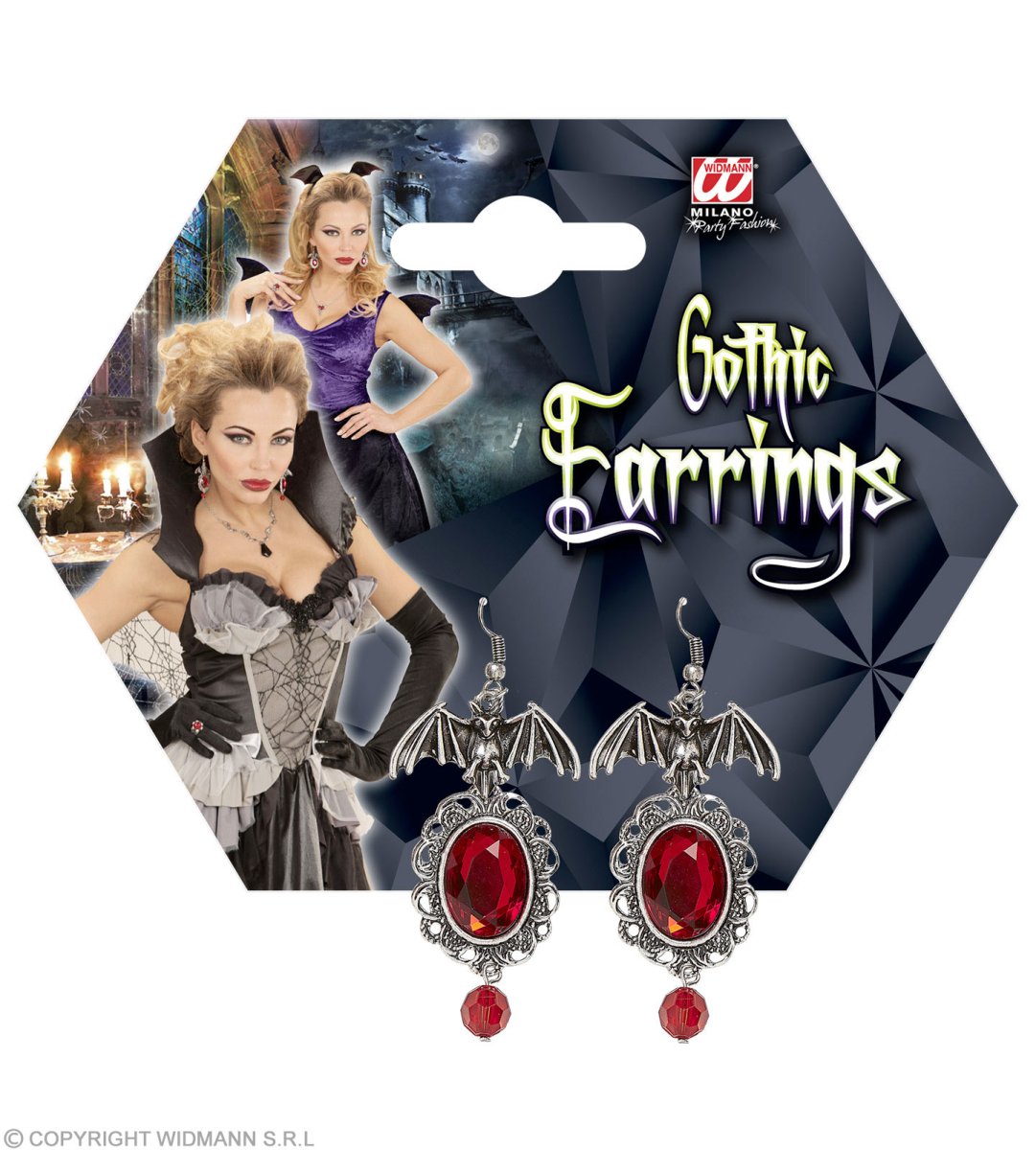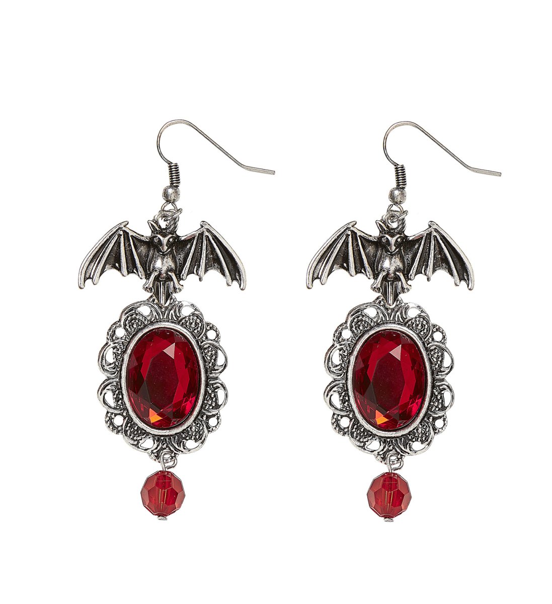 Orecchini pipistrello con gemme rosse