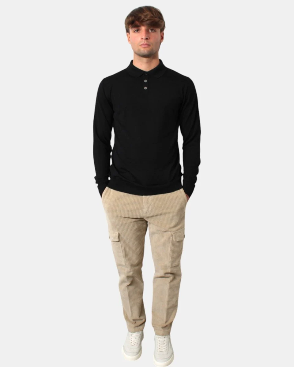 Il pantalone ”J-Kombat” di Be Able presenta due tasche america, due tasche laterali con pattina, due tasche a filetto con bottone sul retro. Il tessuto in velluto roccia cuore è composto per il 97% da cotone e 3% da elastan. Si consiglia lavaggio a mano. Il modello è alto 1,79 e indossa una 32.