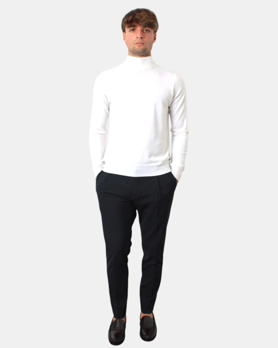 Il pantalone ” Riccardo ” di Be Able presenta elastico con coulisse, chiusura con bottoni e zip, due tasche a filo con una pens, due a tasche a filetto con bottone sul retro, dalla vestibilità regolare è composto per il 34% viscosa, 64% poliestere e 2% elastan. Si consiglia lavaggio a secco . Il modello è alto 1,79 m e indossa una 32