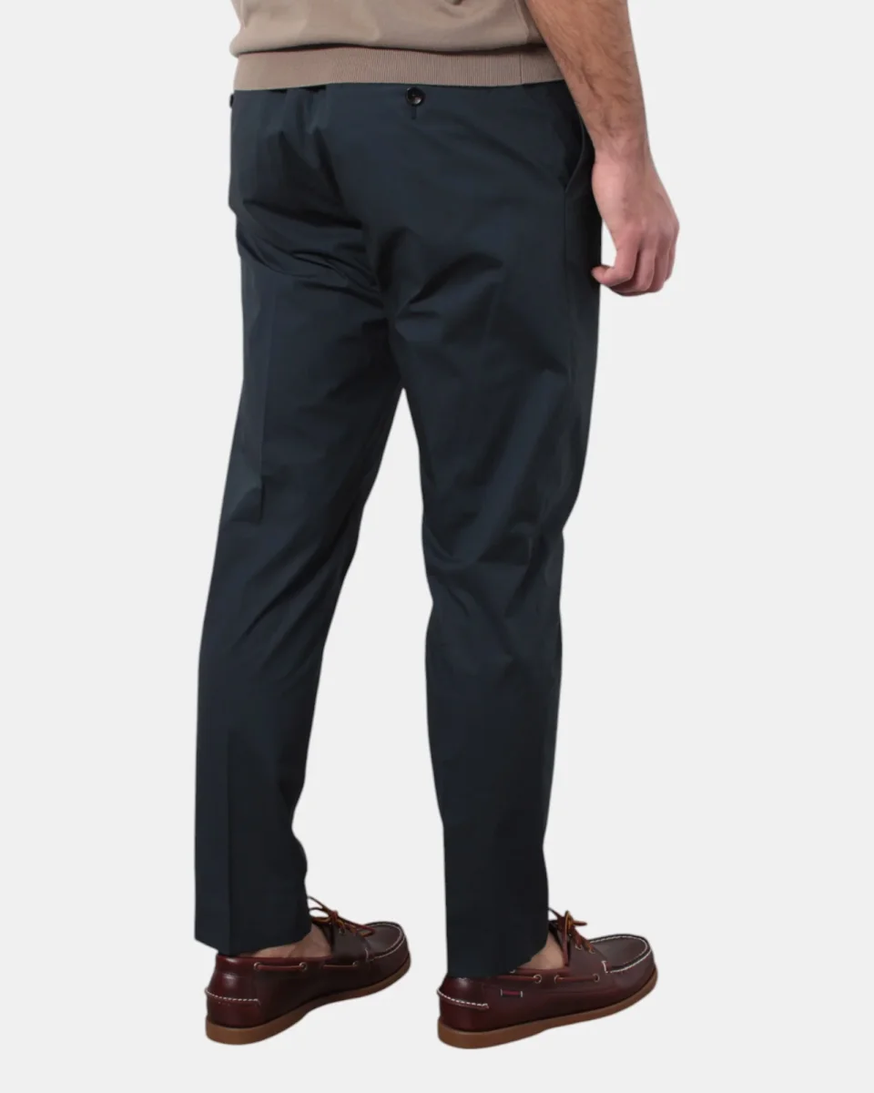 Il pantalone di Be Able presenta elastico con coulisse in vita e laccetti, chiusura con zip e bottone, due tasche frontali e due sul retro, dalla mano fresca dovuta alla sua composizione in 97% cotone e 3% elastan. Si consiglia lavaggio a mano. Il modello è alto 1,78 m e indossa una 32