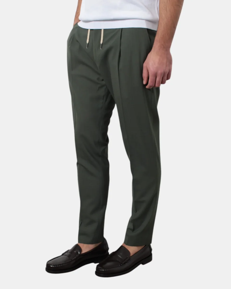 Il pantalone di Be Able presenta chiusura con zip e bottone, due tasche america frontali e due tasche aul retro, laccetti in vita, vestibilità regolare, dalla mano fresca dovuta alla sua composizione in 54% lana vergine, 45% poliestere e 1% elastan. Si consiglia lavaggio a massimo 30 gradi. Il modello è alto 1,78 m e indossa una 32