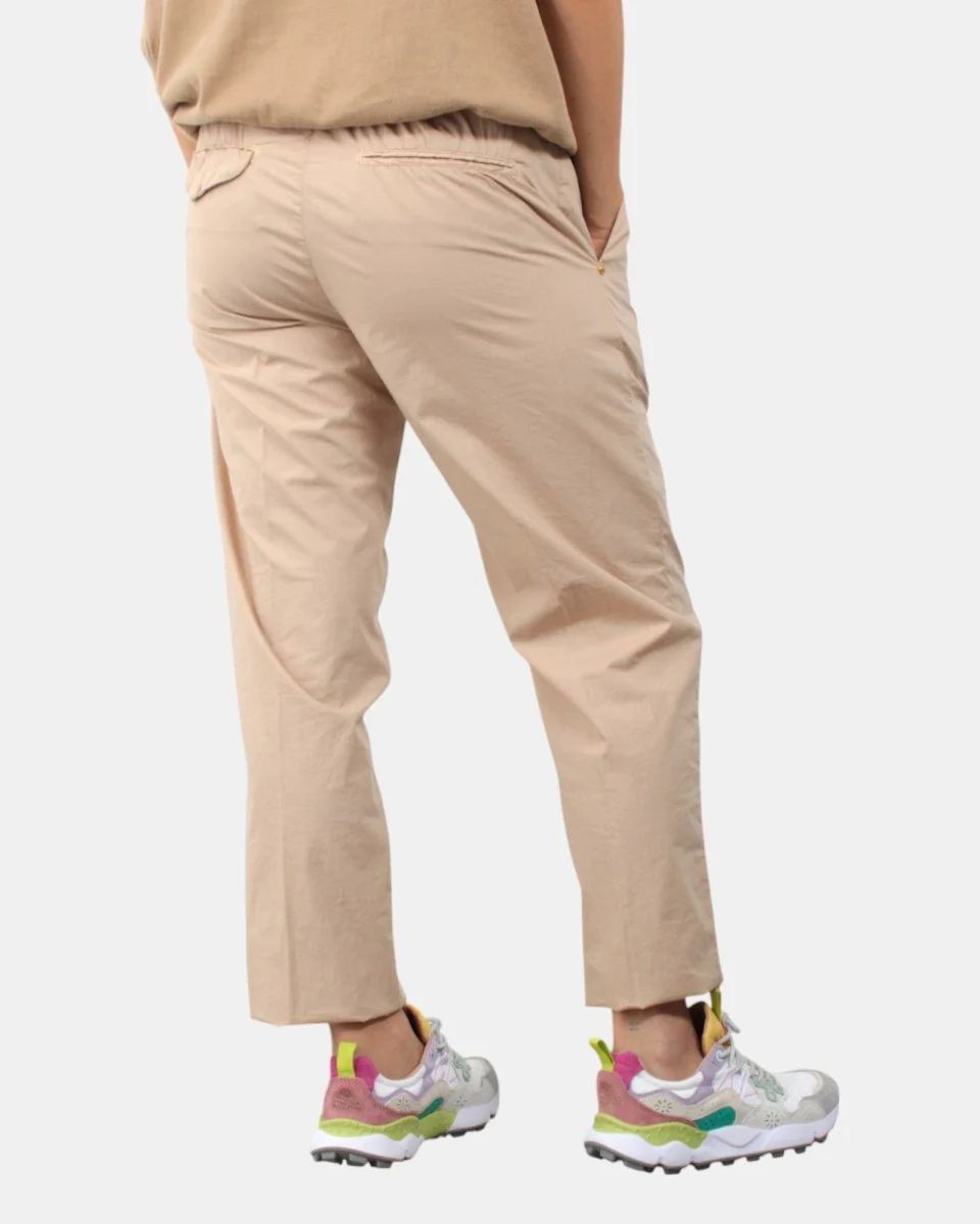Il pantalone White Sand presenta elastico in vita con cintura e chiusura con zip. Composizione: 100% cotone. Si consiglia lavaggio delicato a massimo 30 gradi. La modella è alta 1,68 e indossa una 42.