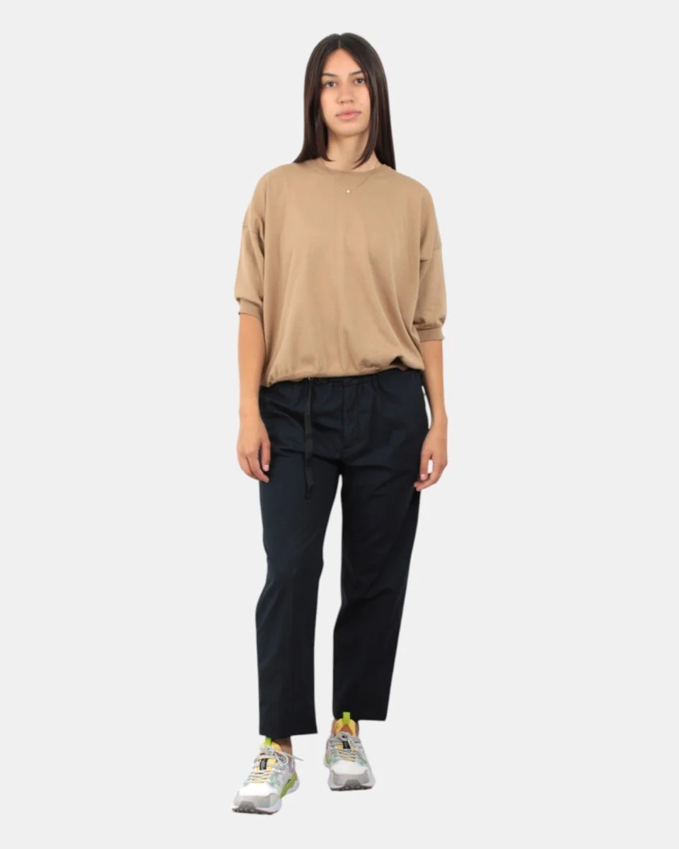 Il pantalone White Sand presenta elastico in vita con cintura e chiusura con zip. Composizione: 100% cotone. Si consiglia lavaggio delicato a massimo 30 gradi. La modella è alta 1,68 e indossa una 42.