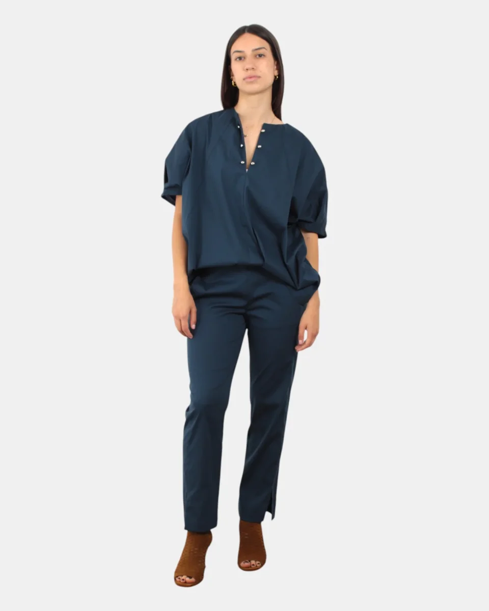 Pantalone Jijil con elastico in vita e due tasche frontali, realizzato in 78% cotone, 19% poliammide e 3% elastan. Si consiglia lavaggio delicato a massimo 30 gradi. La modella è alta 1,68 e indossa una 40.