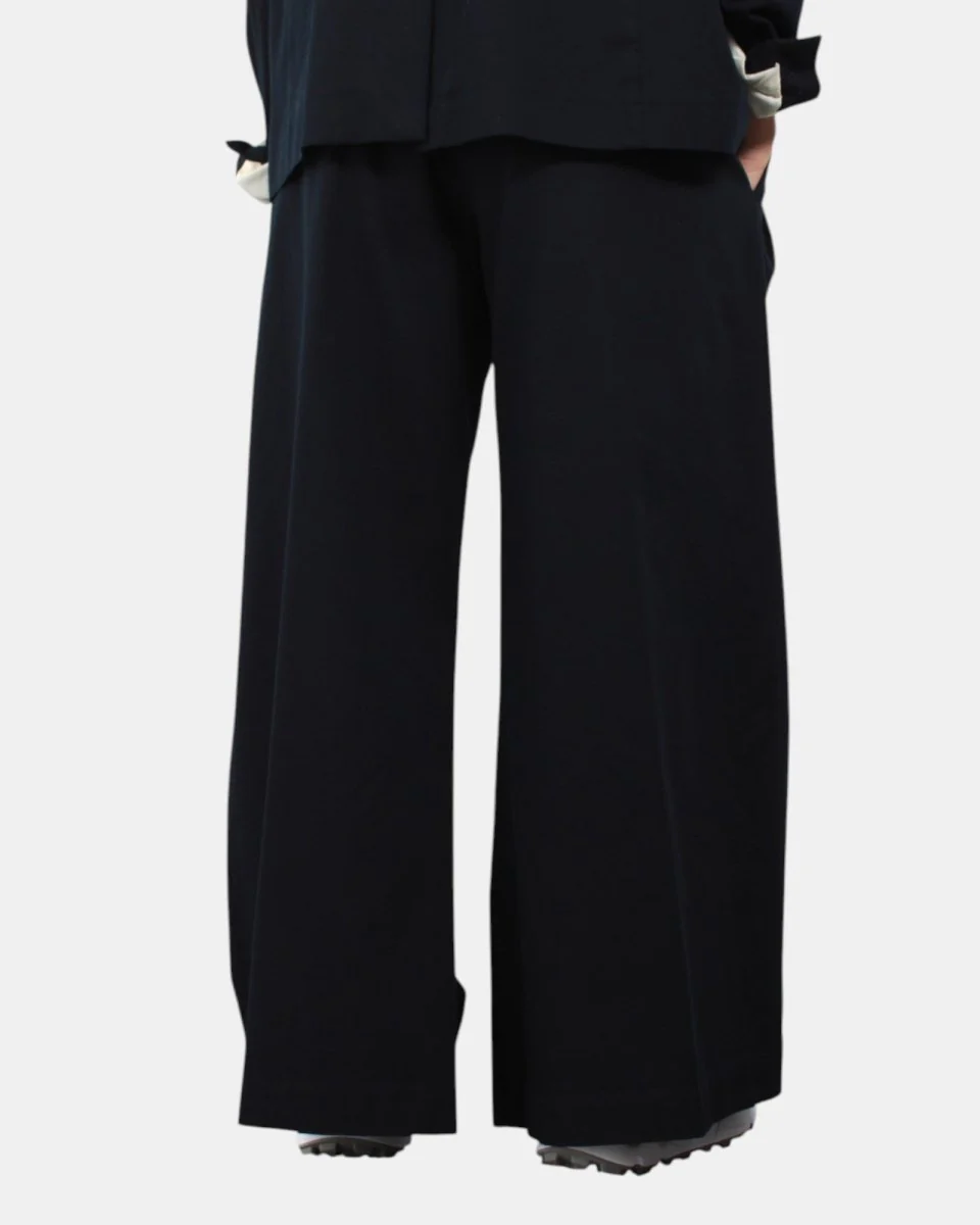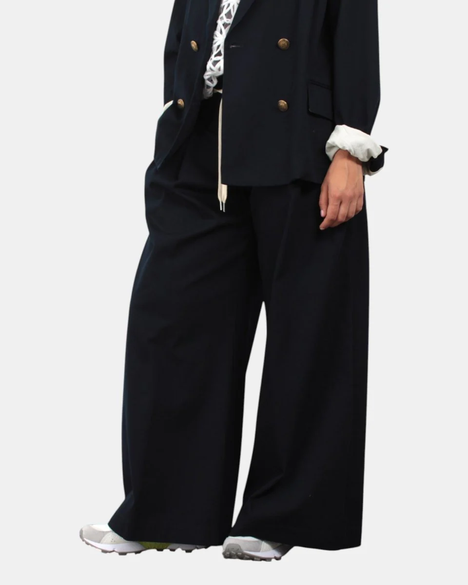 Pantalone Jucca gamba flared e coulisse in vita. Dotato di passanti, chiusura con bottone e zip. Composizione: 100% cotone. Si consiglia lavaggio a massimo 30 gradi. La modella è alta 1,68 e indossa una 40.