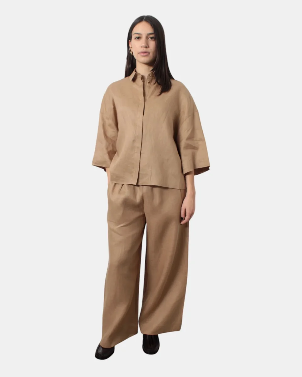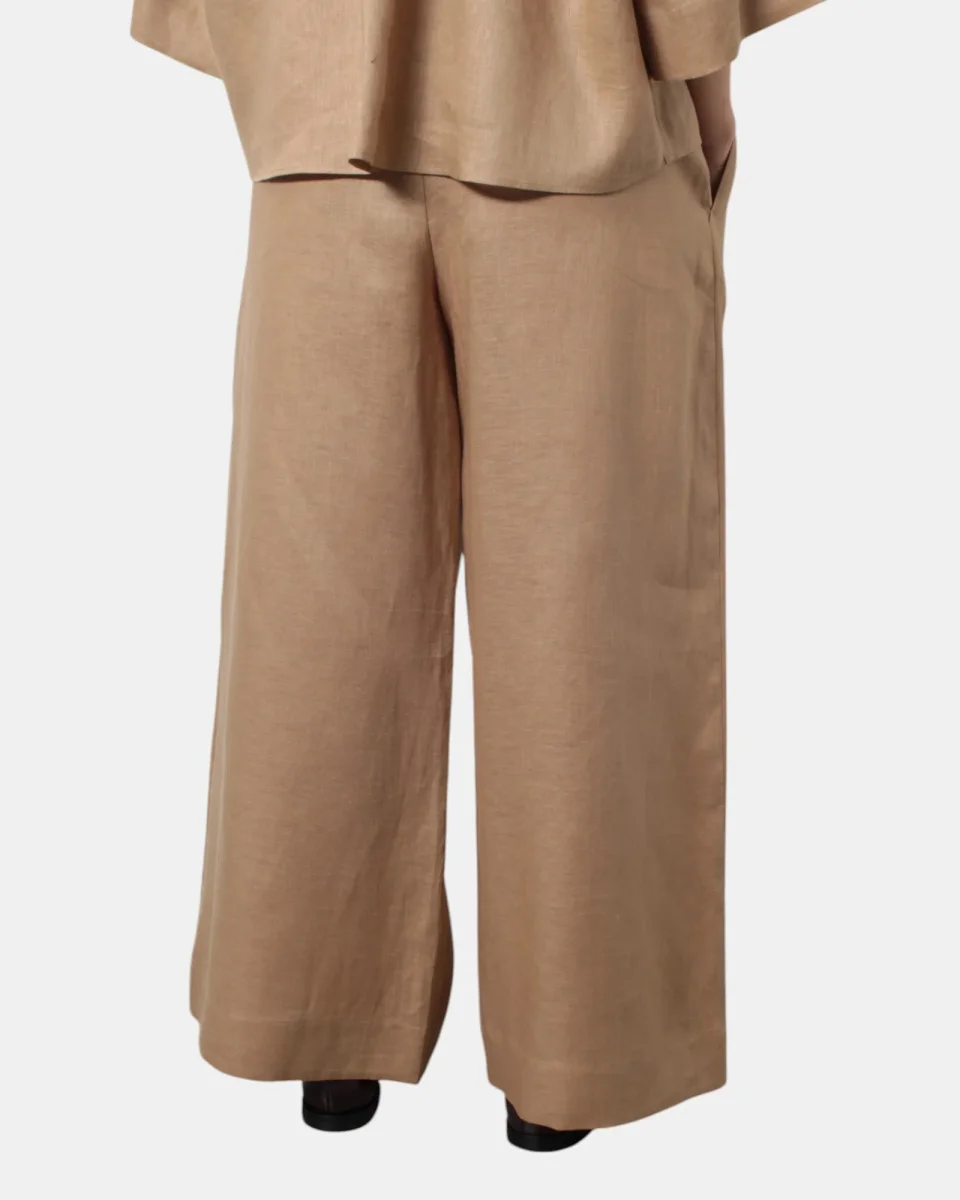 Il pantalone di Max Mara presenta elastico in vita, fantasia monocolore, vestibilità ampia, dalla mano fresca e morbida dovuta alla sua composizione in 100% lino. Si consiglia lavaggio a massimo 30 gradi. La modella è alta 1,68 m e indossa una 40