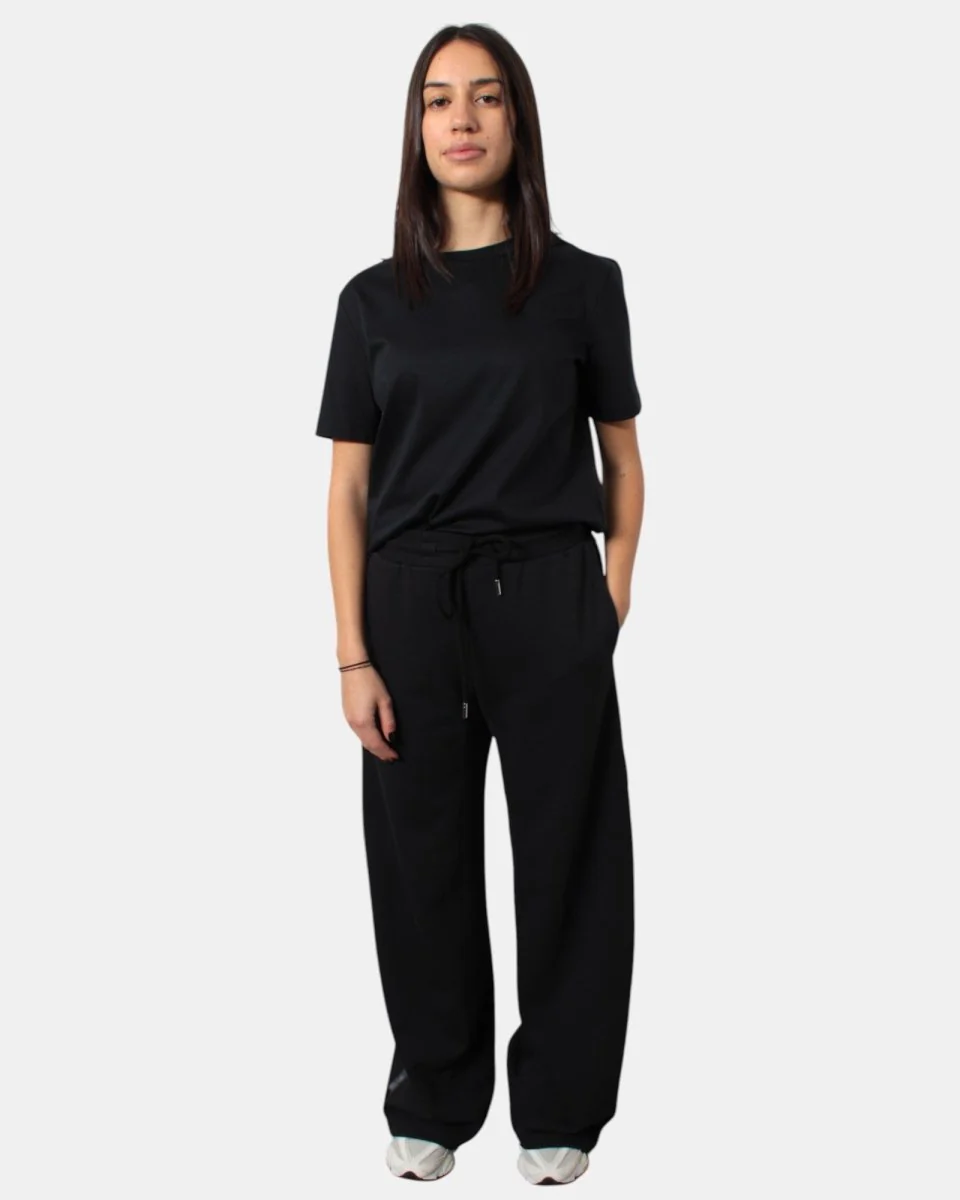 Il pantalone della tuta di Max Mara presenta bande in viscosa argentate sui lati, tasca a toppa sul retro con logo iniziali brand, elastico in vita con lacci regolabili, elastico sulla caviglia. Dalla mano morbida dovuta alla sua composizione in 54% cotone, 44% poliestere e 2% elastan. Si consiglia lavaggio a mano. La modella è alta 1,68 m e indossa una XS
