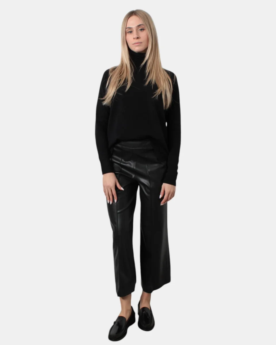 Il pantalone di JIjil presenta tessuto in ecopelle dalla vestibilità larga, con apertura laterale con zip. La sua composizione è in 100% pèoliestere. Si consiglia lavaggio a mano. La modella è alta 1,70 m e indossa una 40