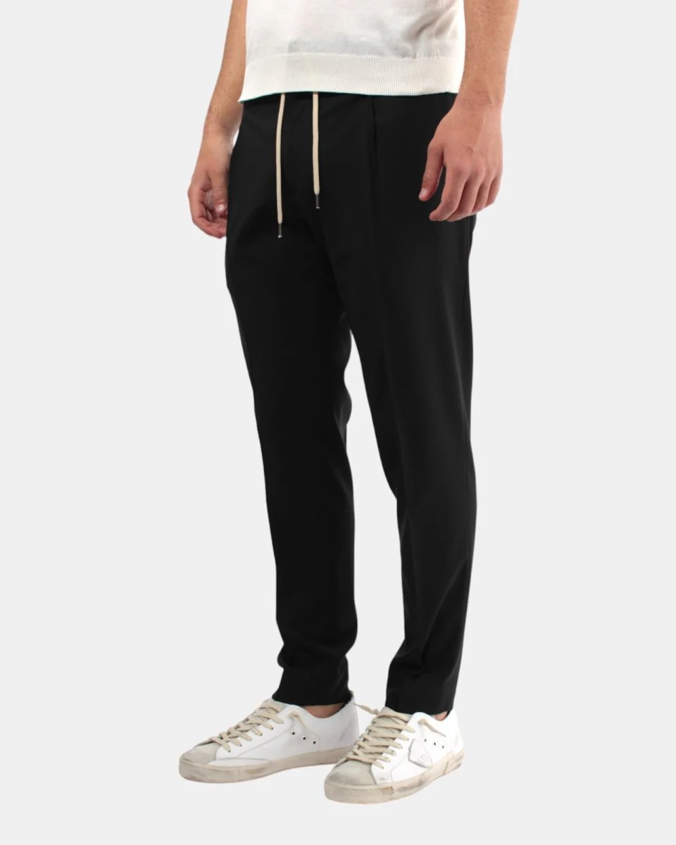 – DETTAGLI: chiusura frontale con zip a scomparsa, bottone logato, coulisse in vita e tasche a filo