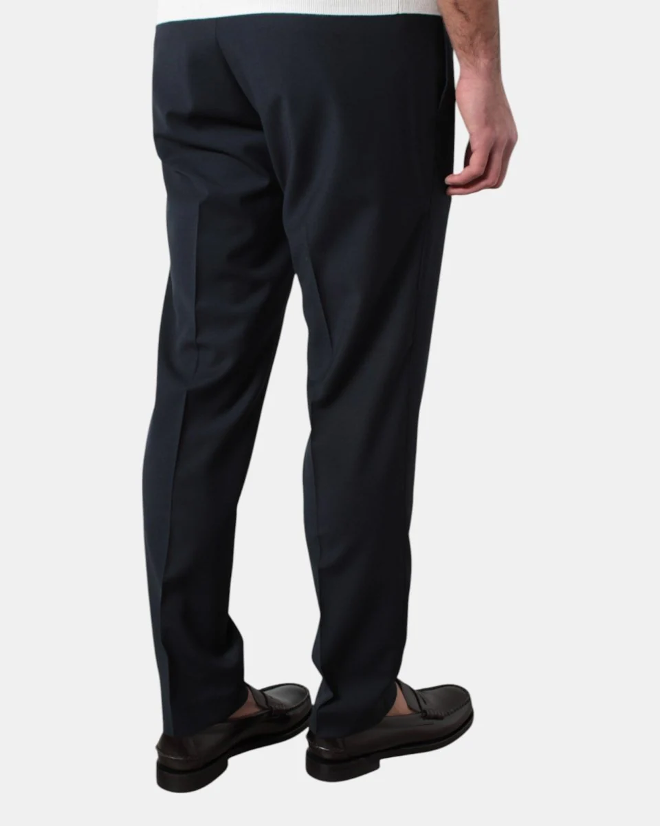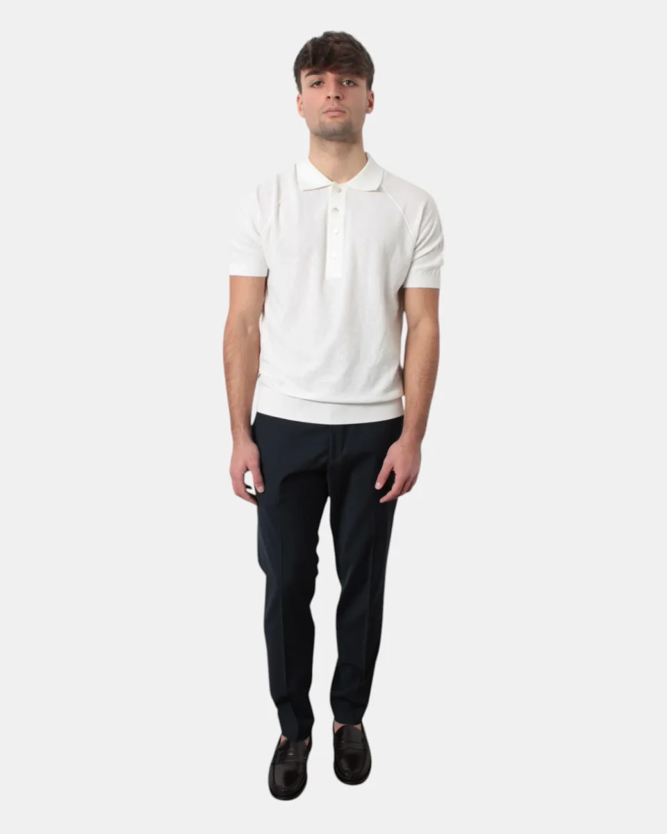 Il pantalone modello tasca a filo di Michele Carbone presenta tasche frontali, due tasche a filetto sul retro, dalla mano morbida e fresca dovuta alla sua composizione in 54% poliestere, 44% lana 2% elastan. Si consiglia il lavaggio a massimo 30 gradi. Il modello è alto 1,78 m e indossa una 32