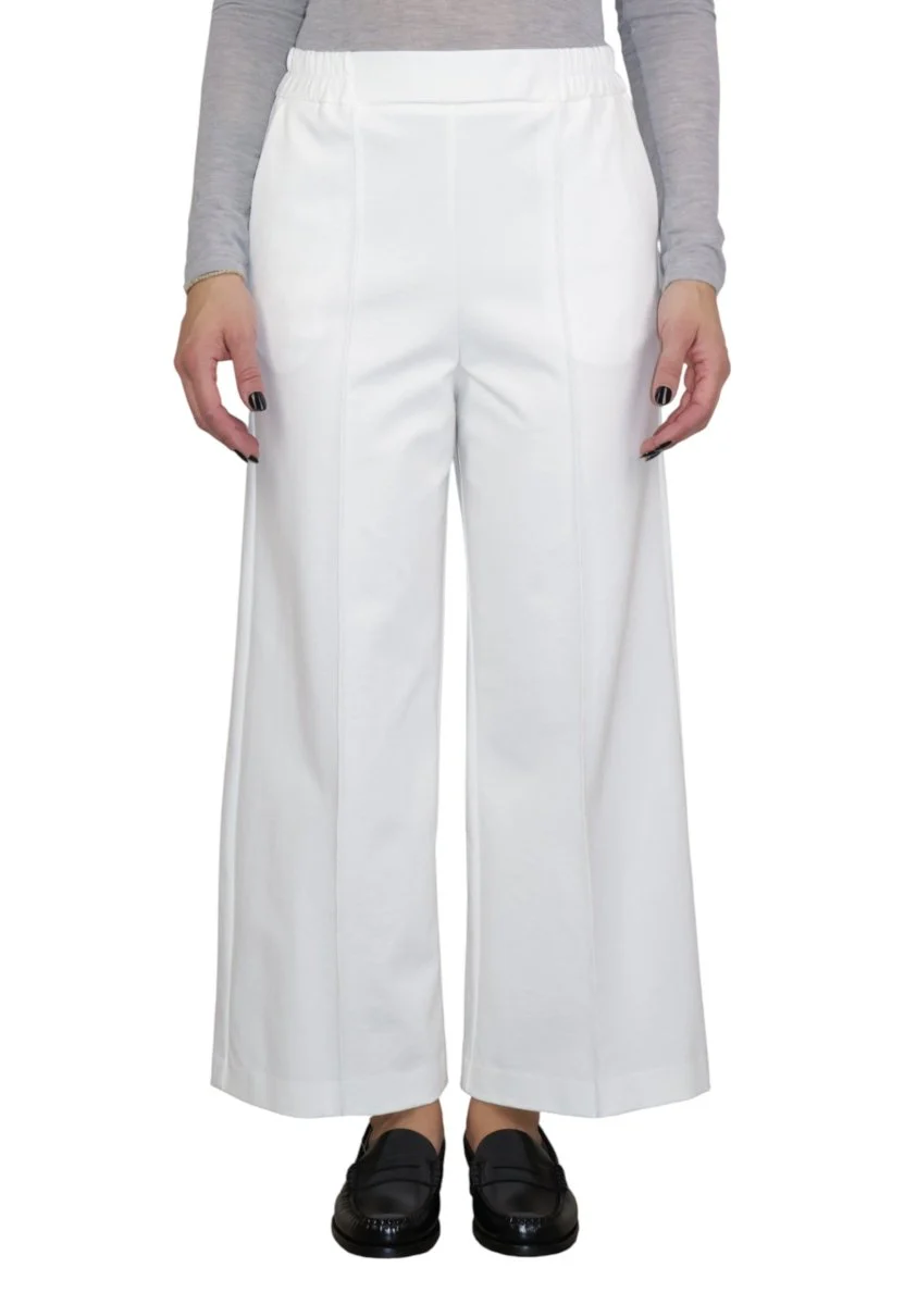 Realizzati in un tessuto morbido e traspirante, questi pantaloni a gamba larga garantiscono un comfort ottimale per tutto il giorno. La loro struttura elastica permette una libertà di movimento senza pari, mentre il design minimalista li rende facilmente abbinabili a qualsiasi top o accessorio.