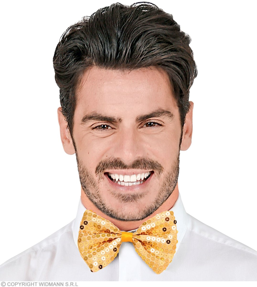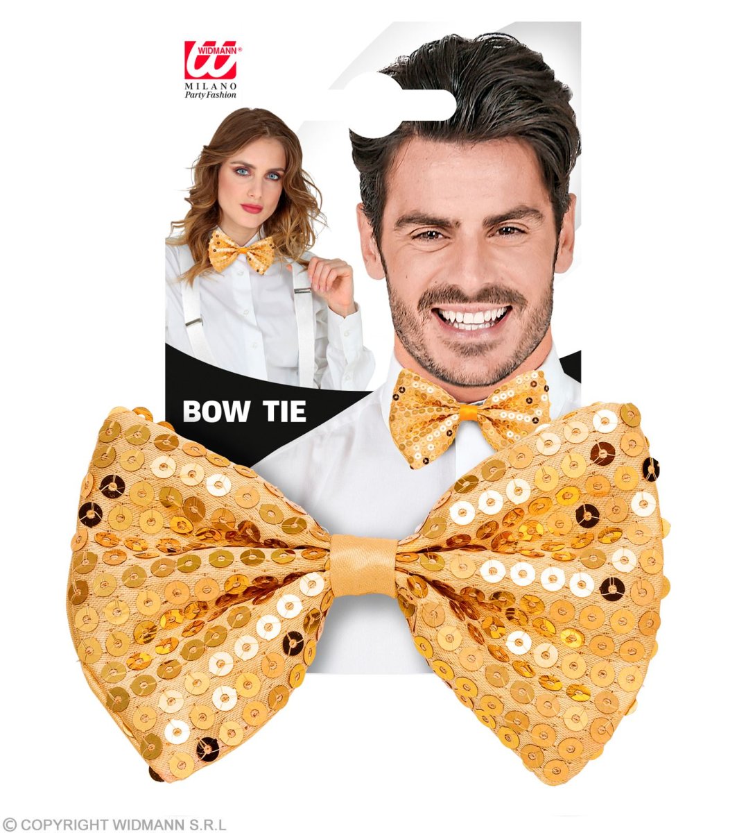 • Nella confezione è incluso un papillon decorato con paillettes dorate. Questi sono cuciti sul tessuto del papillon