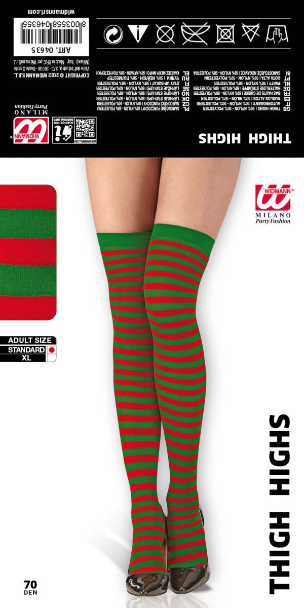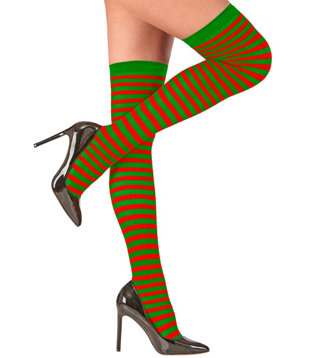 - Articolo taglia unica Adulto composto da paio di parigine rigate rosse/verdi 70 den