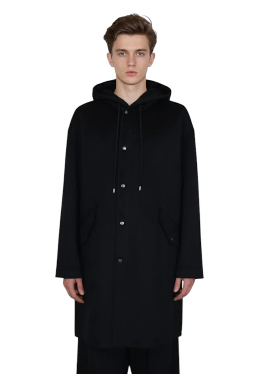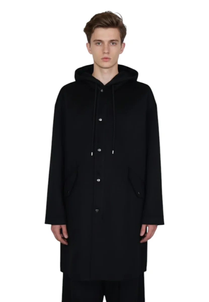 La lana assicura morbidezza e isolamento termico, il poliestere contribuisce alla resistenza e alla praticità, mentre le altre fibre completano la struttura del tessuto conferendo stabilità e durata. Un cappotto pensato per accompagnare l’uomo moderno con stile e funzionalità.