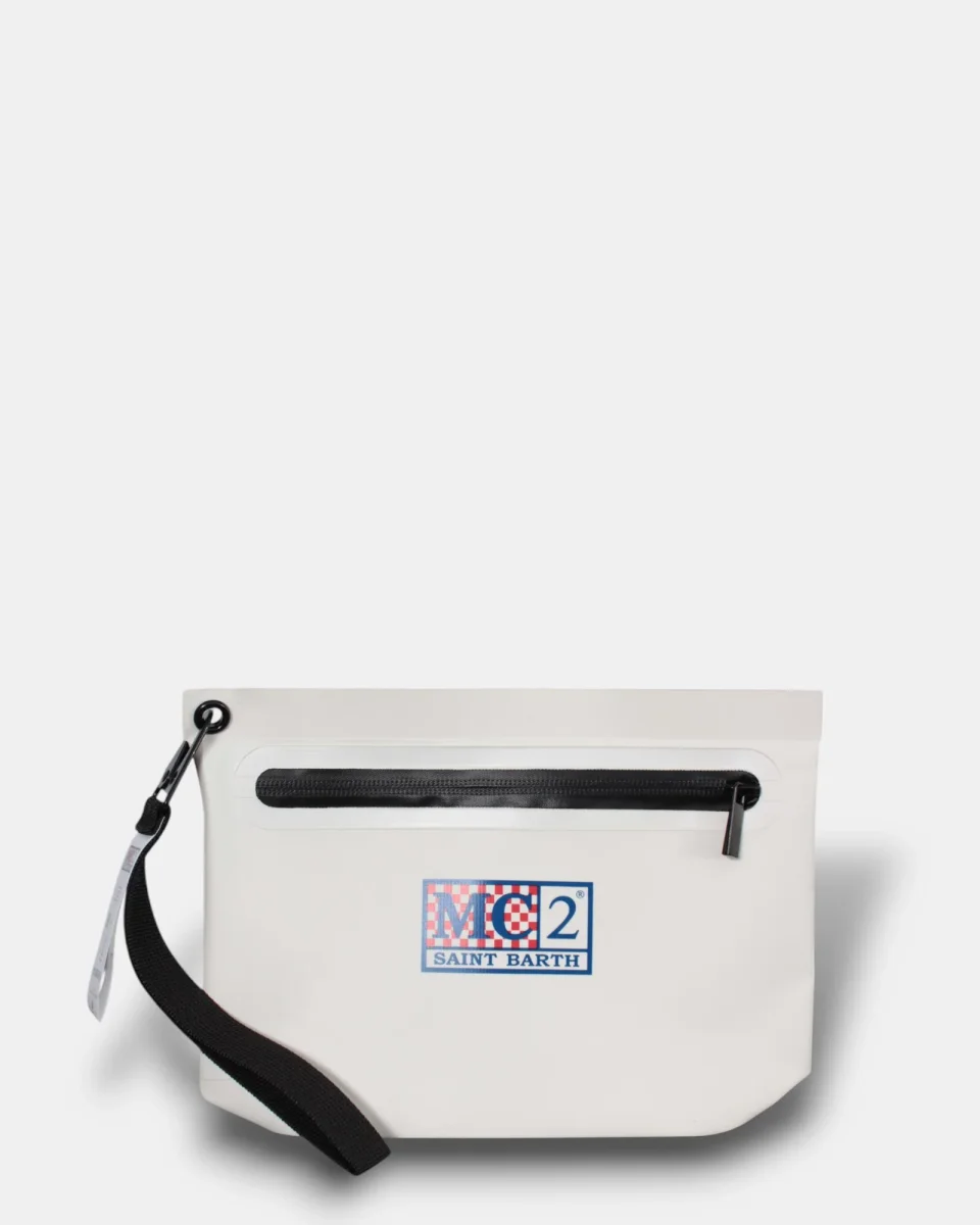 La pochette di MC2 Saint Barth presenta scritta brand su ambo i lati, chiusura con zip in contrasto, composta in 100% poliestere