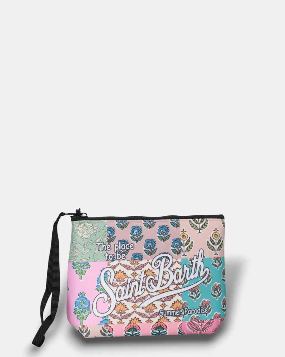La pochette di MC2 Saint Barth presenta scritta brand su ambo i lati, fantasia floreale, e zip in contrasto, composta in 80% sbr e 20% poliestere