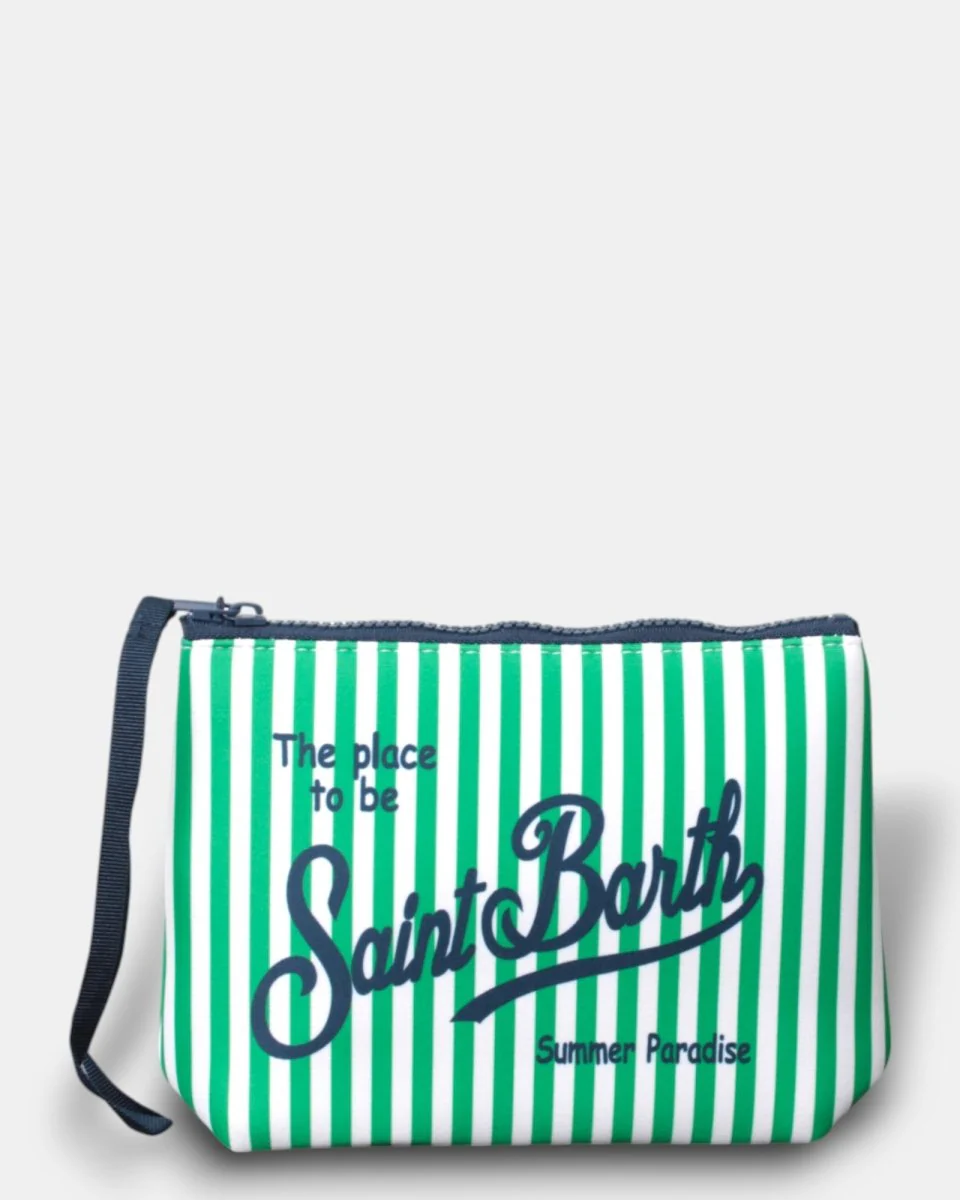 La pochette di MC2 Saint Barth presenta scritta brand su ambo i lati, chiusura con zip in contrasto, composta in 80% SBR e 20% poliestere