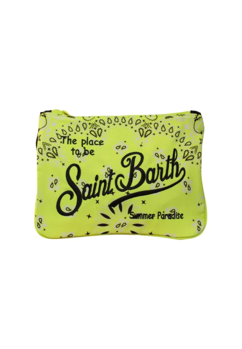 La pochette di MC2 Saint Barth è realizzata in 100% cotone. Il modello a fantasia allover, presenta chiusura con zip, cinturino da polso, logo ricamato a contrasto sul fronte e sul retro. Le dimensioni dell’articolo sono L28 X H21cm.