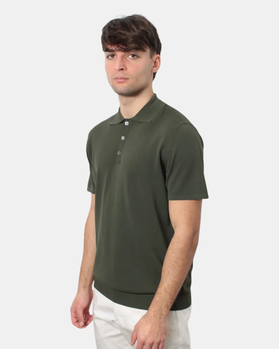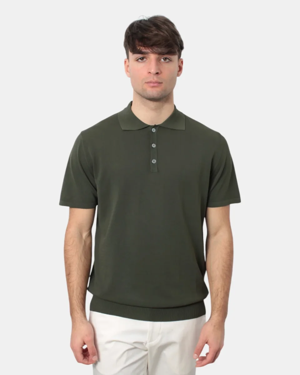 La polo a maniche corte di Daniele Fiesoli presenta colletto, fondo e maniche a costine, chiusura a 3 bottoni, fantasia monocolore, dalla mano fresca dovuta alla sua composizione in 100% cotone. Si consiglia lavaggio a mano. Il modello è alto 1,78 m e indossa una 50