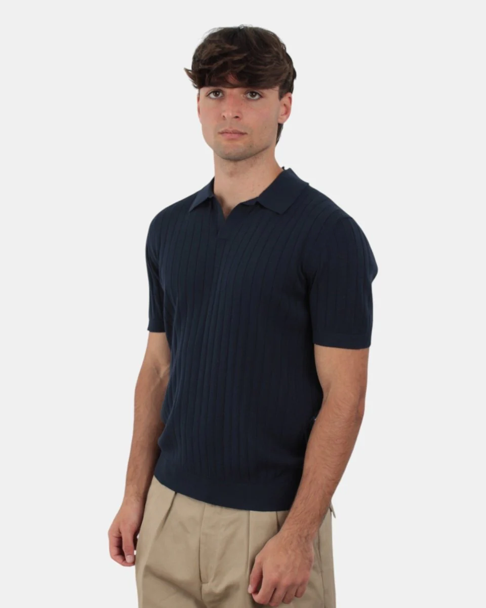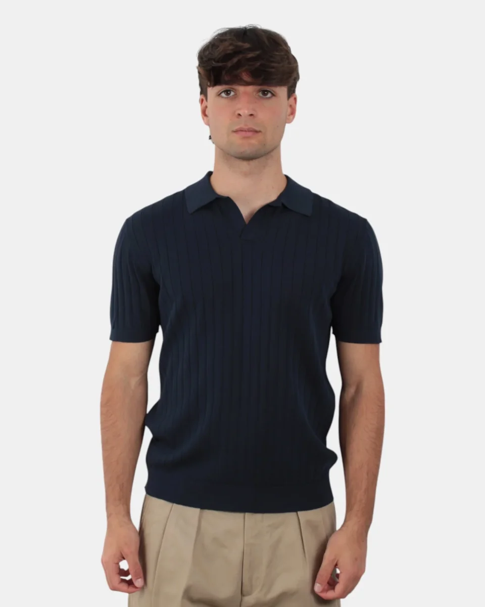 La polo a manica corta di Della Spiga presenta fantasia a bande verticali in tinta, colletto a costine, dalla mano fresca dovuta alla sua composizione in 100% cotone. Si consiglia lavaggio a mano. Il modello è alto 1,78 me indossa una 50