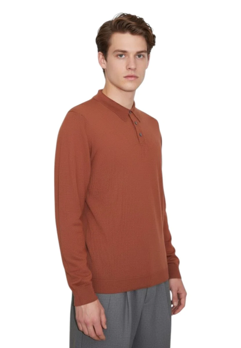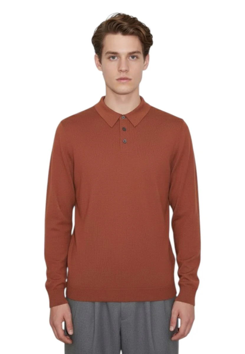 La sua tonalità calda conferisce un tocco sofisticato a qualsiasi outfit, mentre la vestibilità impeccabile assicura la massima libertà di movimento. Il colletto classico e la chiusura a tre bottoni aggiungono un dettaglio di classe, rendendo questa polo adatta a molteplici occasioni.