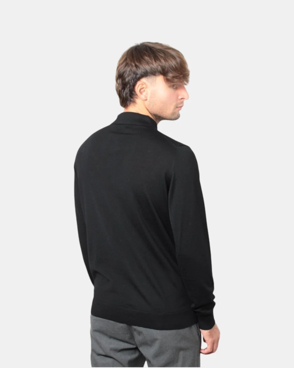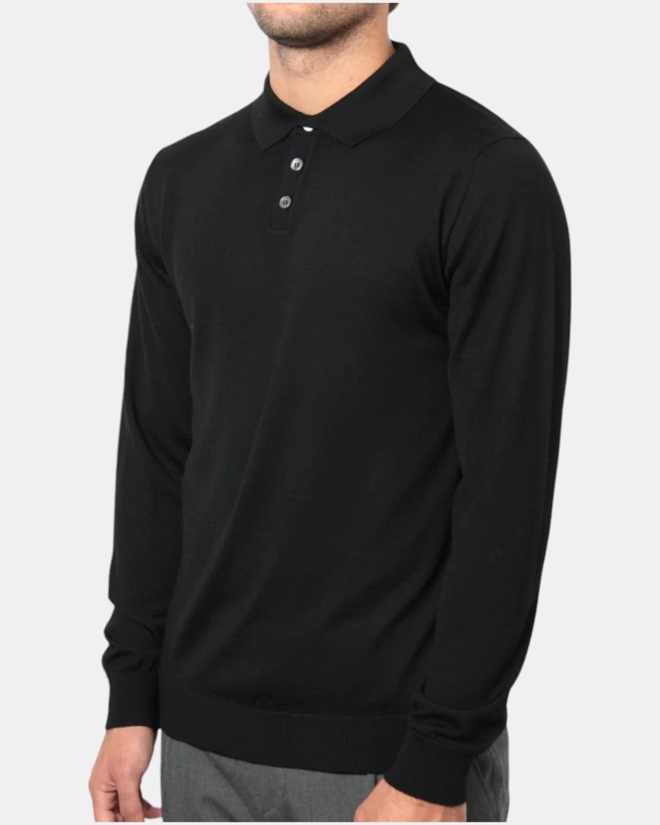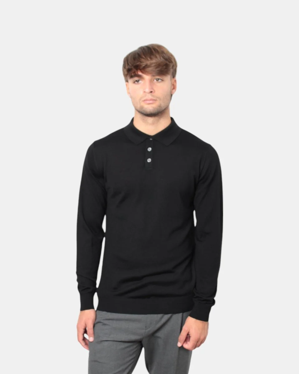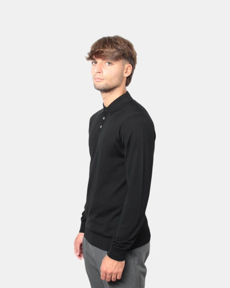 La polo a manica lunga di Daniele Fiesoli con chiusura tre bottoni presenta composizione in 100% lana merino, la sua finezza quattordici favorisce l’utilizzo anche sotto blazer.