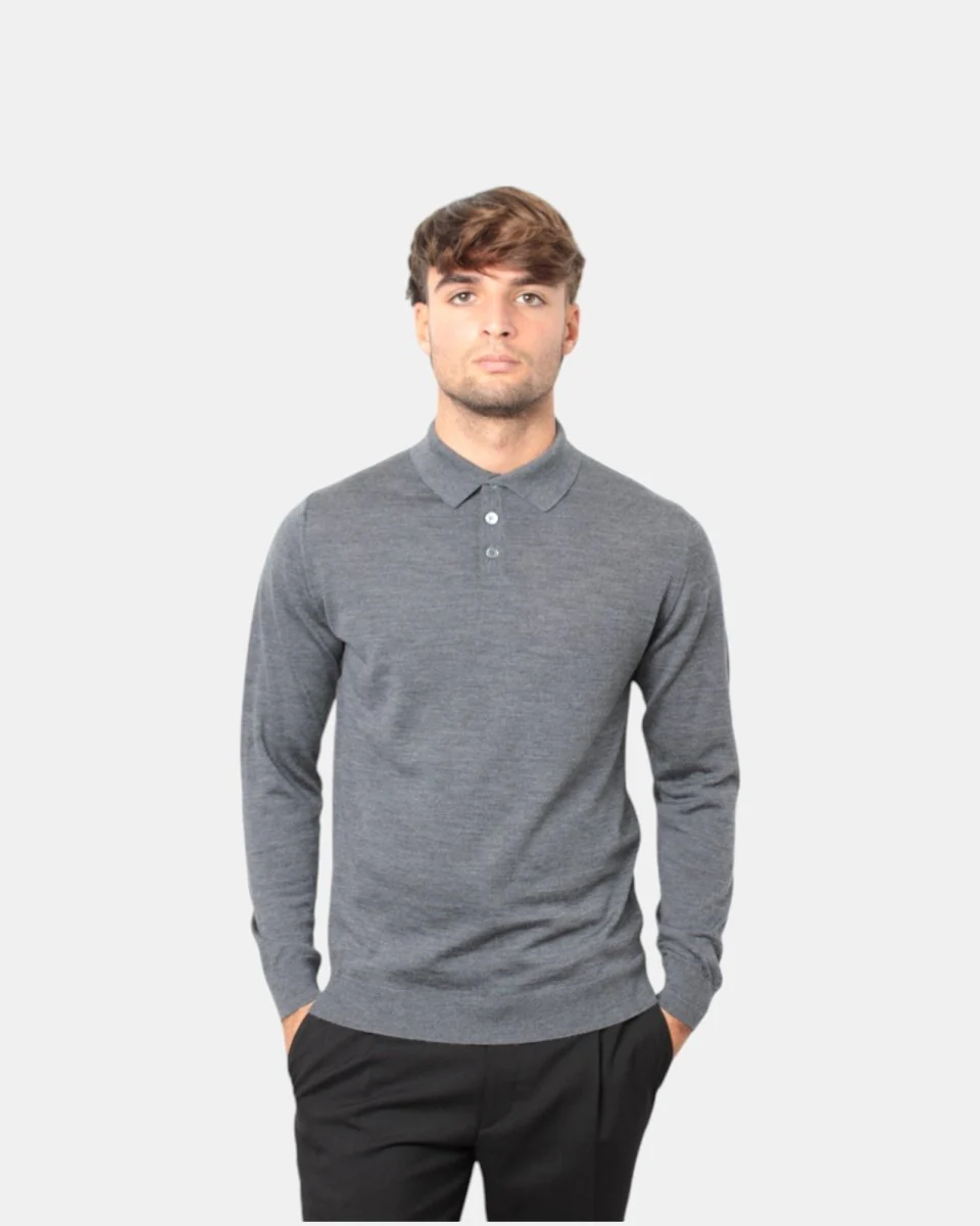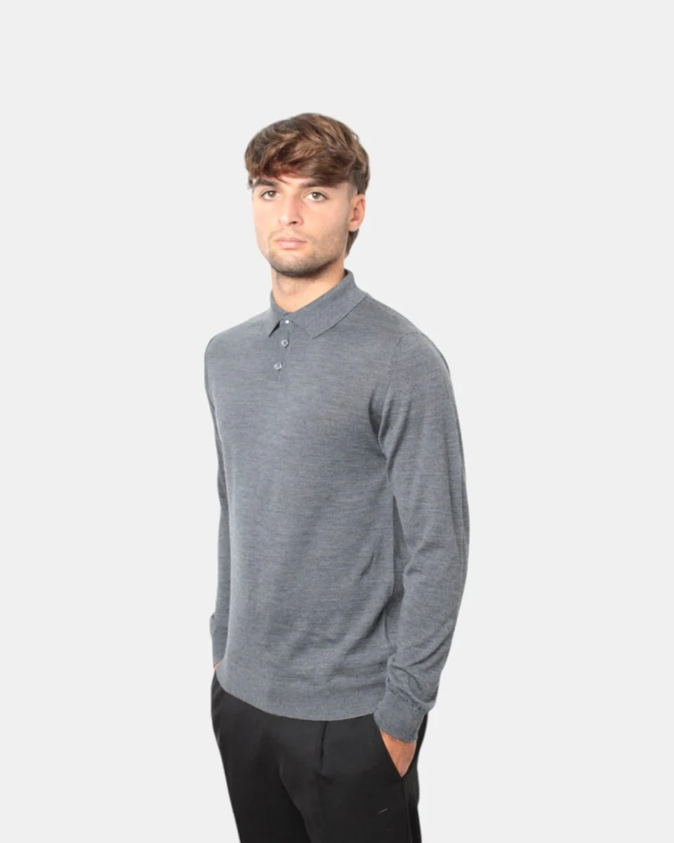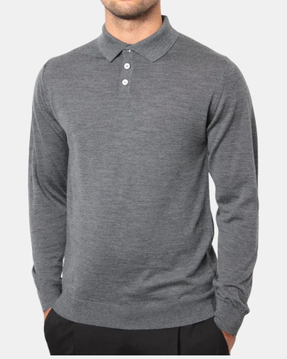La polo a manica lunga di Daniele Fiesoli con chiusura tre bottoni presenta composizione in 100% lana merino, la sua finezza quattordici favorisce l’utilizzo anche sotto blazer.