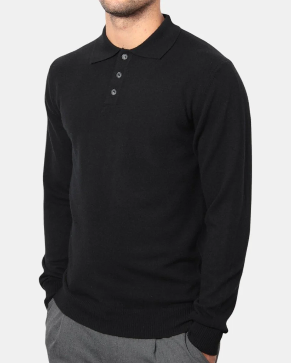 La polo manica lunga di Daniele Fiesoli a chiusura tre bottoni presenta composizione in 90% lana extrafine e 10% cashmere, garantendo calore ed al tatto una sensazione piacevole di morbidezza.