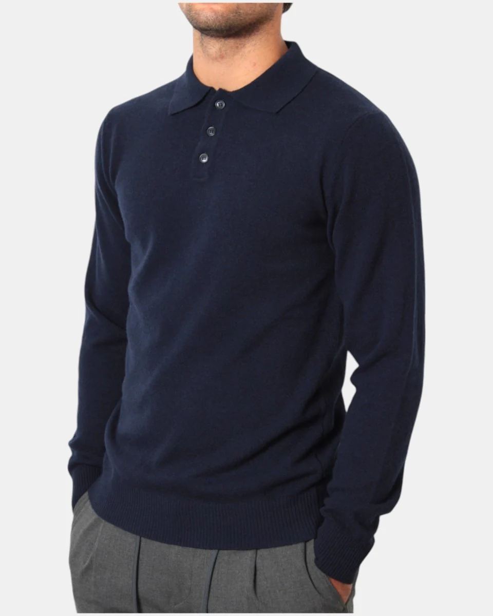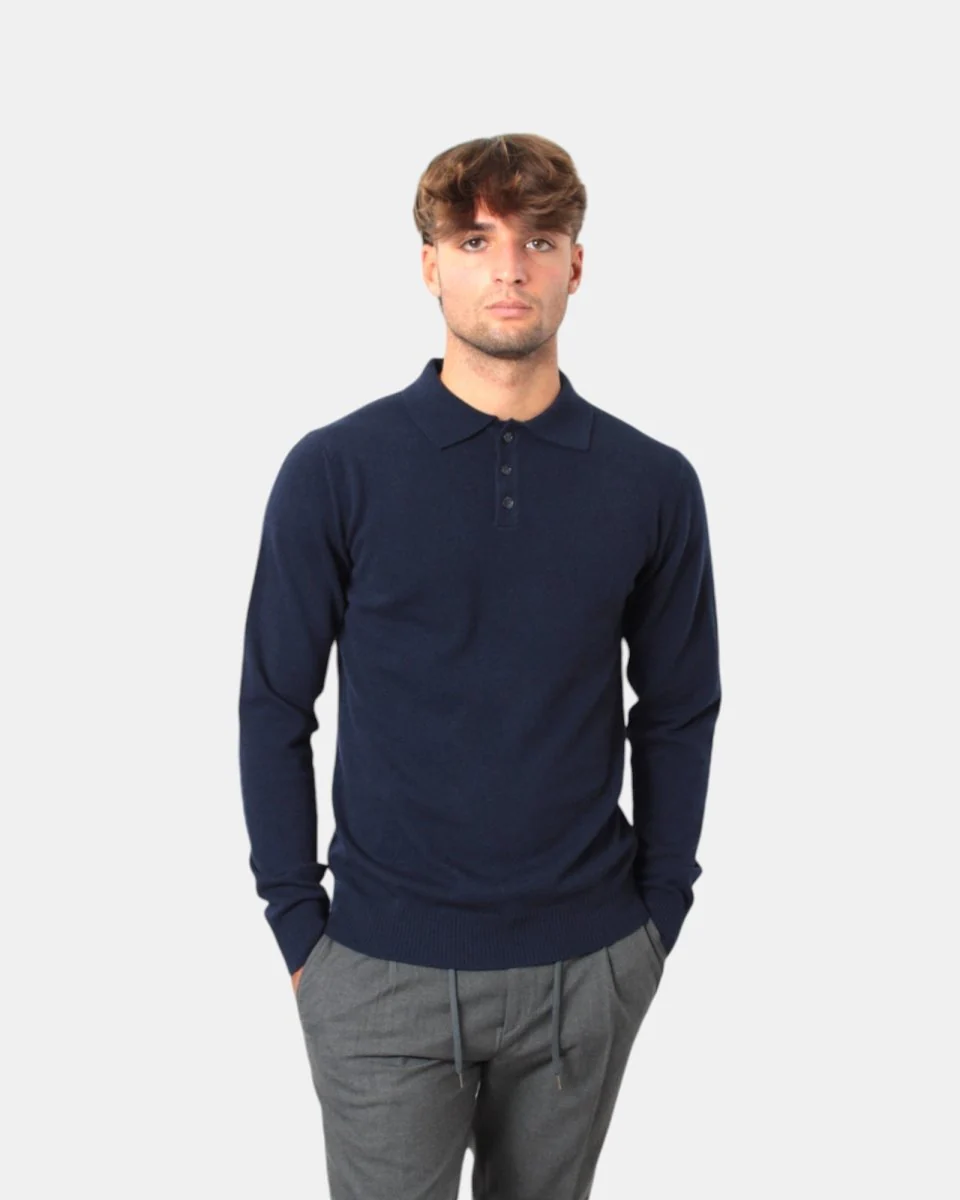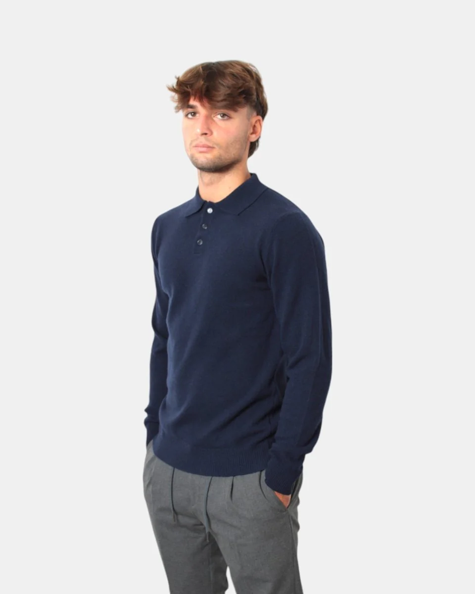 La polo manica lunga di Daniele Fiesoli a chiusura tre bottoni presenta composizione in 90% lana extrafine e 10% cashmere, garantendo calore ed al tatto una sensazione piacevole di morbidezza.