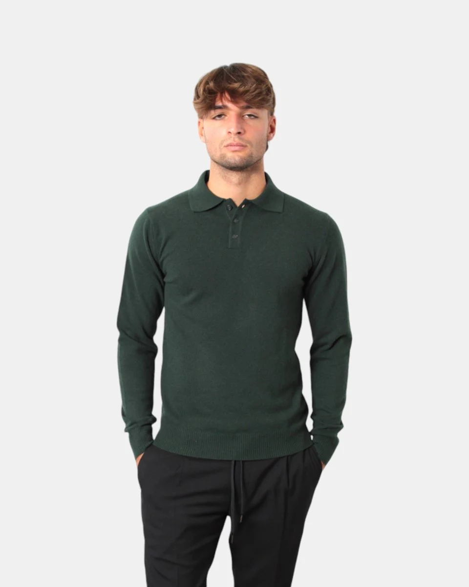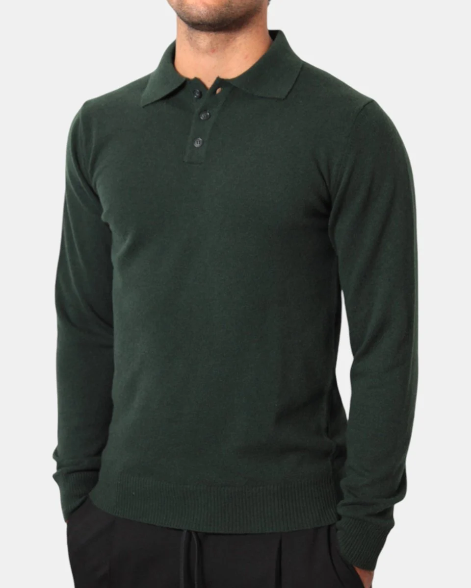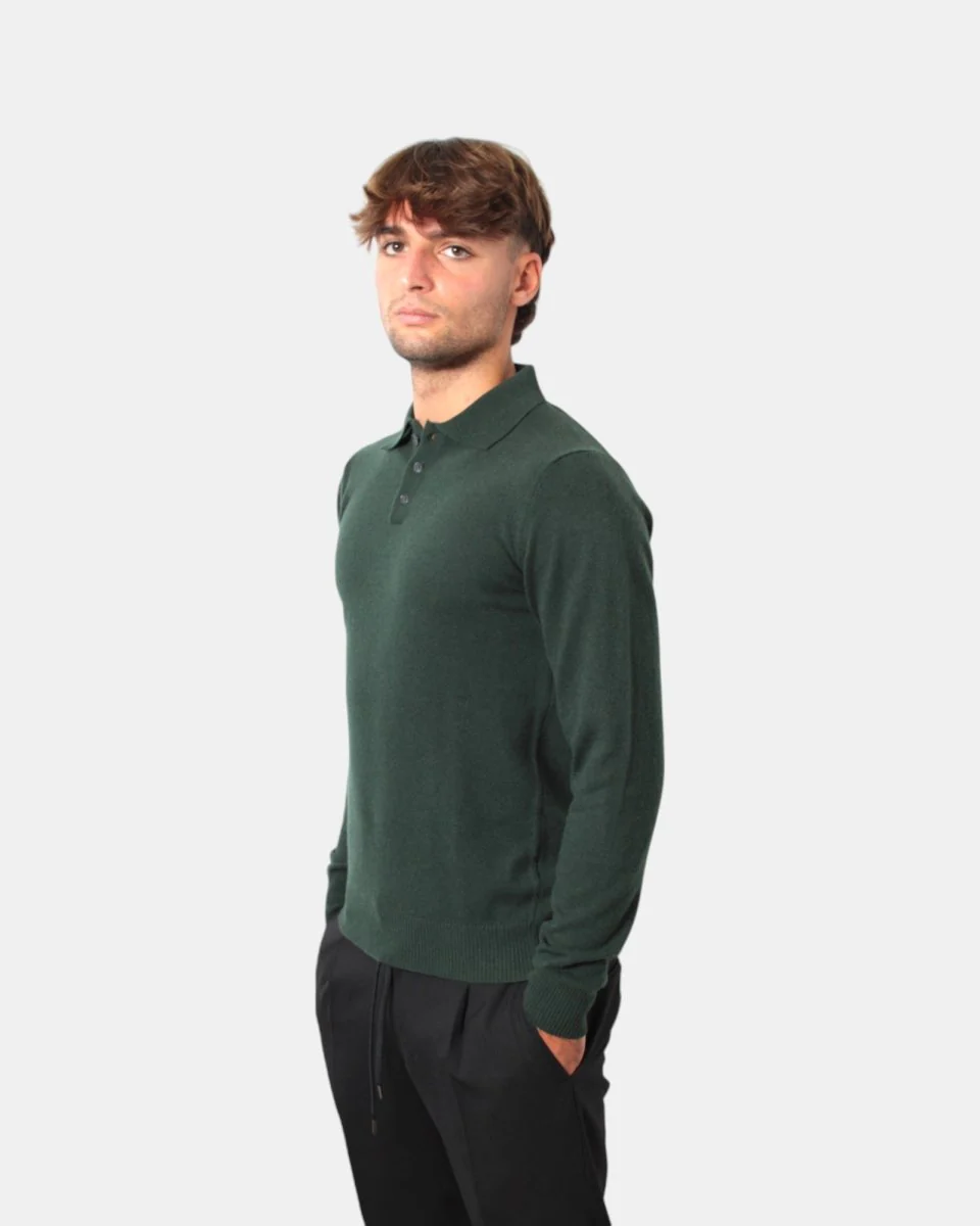 La polo manica lunga di Daniele Fiesoli a chiusura tre bottoni presenta composizione in 90% lana extrafine e 10% cashmere, garantendo calore ed al tatto una sensazione piacevole di morbidezza.