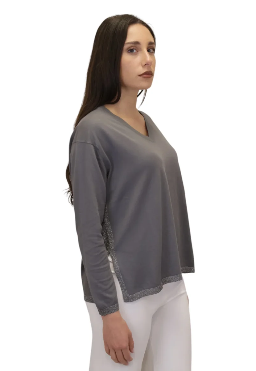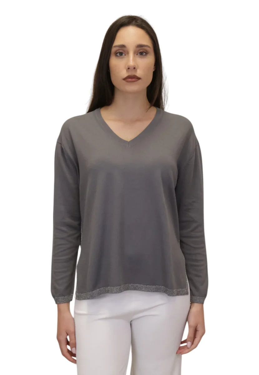 Scopri il pullover donna Gran Sasso GIROCOLLO MANICA LUNGA con scollo a V e spacchi laterali, un capo elegante e confortevole ideale per ogni occasione. Realizzato con una pregiata miscela di 90% cotone, 6% viscosa e 4% metallo, offre morbidezza e resistenza, valorizzando la silhouette femminile con stile raffinato. Perfetto da indossare sia in ufficio che nel tempo libero, questo pullover con spacchi unisce design sofisticato e praticità, consigliato per lavaggio a mano per preservarne la qualità. Un must-have del guardaroba femminile che unisce comfort, eleganza e versatilità.