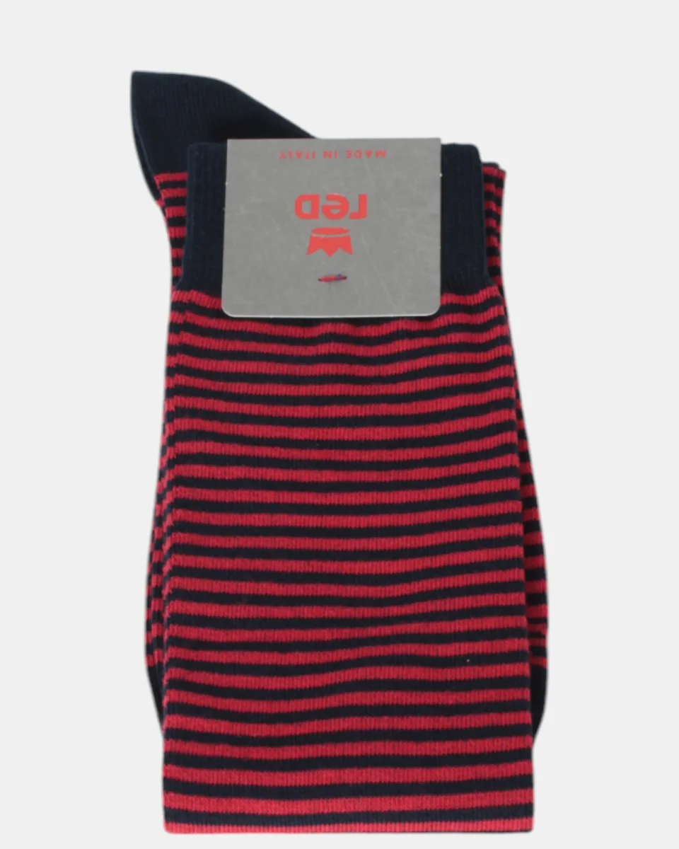 La calza lunga di Red fantasia rigata, monocolore, con fondo in contrasto è composta per il 79% da cotone, 19% poliamide e 2% elastan